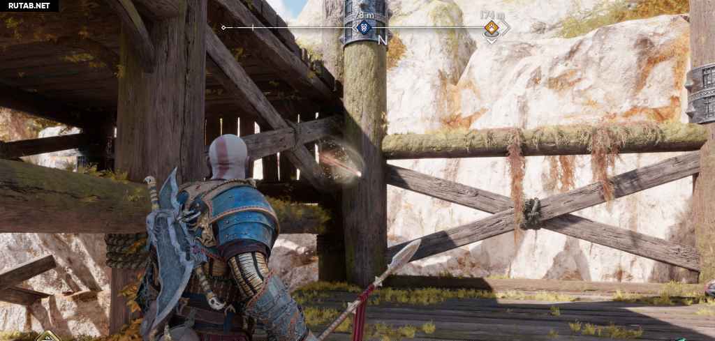 Рядом с сундуком есть чтение рун. Поднимитесь по цепи и идите к мосту.