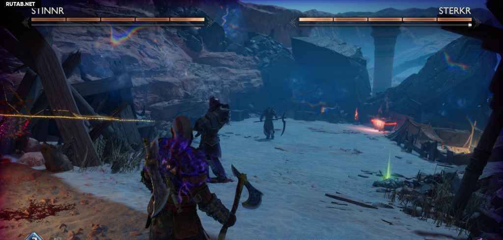 Стинн владеет косой, а Стеркр — боевым молотом. У обоих будут похожие атаки, сочетание обычных атак, пробития блока и неблокируемых рукопашных атак, а также атака ударом щитом и удар по области, от которых нужно увернуться. С этими двумя довольно просто сражаться, используйте свои рунические способности/способности компаньона на одном из них, а затем используйте свой Спартанский гнев на втором. В этом районе также есть кристалл здоровья, который восстанавливает много здоровья, поэтому здоровье не должно вызывать проблем.