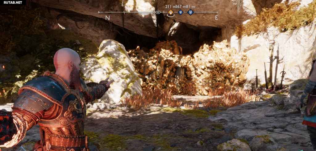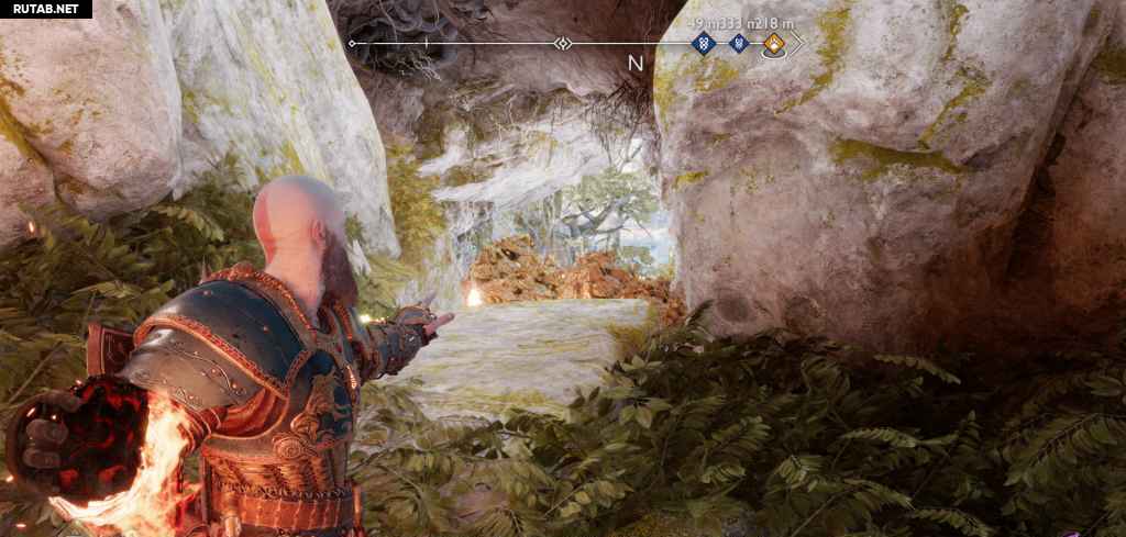Как только он будет мертв, заберитесь на уступ слева от разлома Иггдрасиль. Обернитесь и бросьте зажигательную бомбу через брешь, чтобы уничтожить руду.