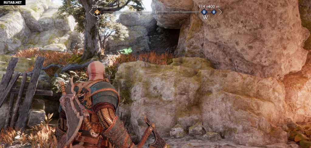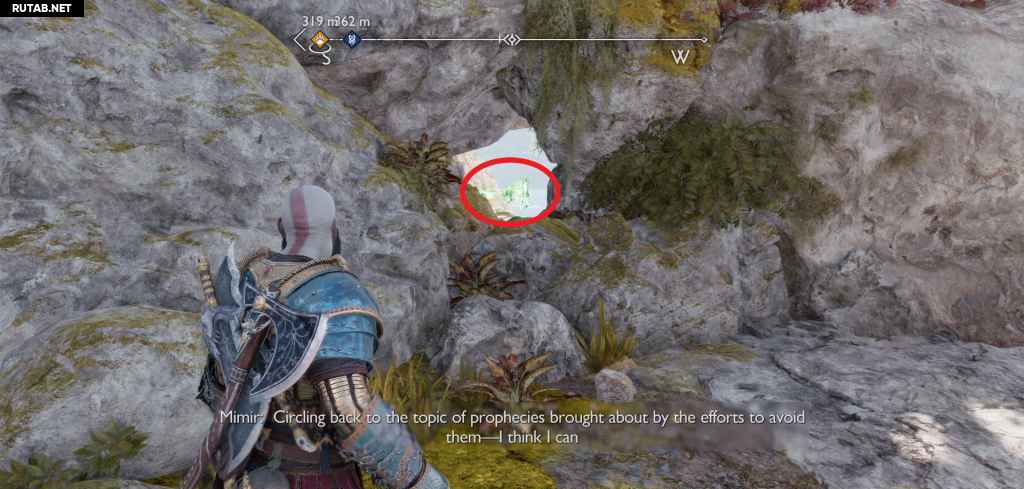 Поднимитесь на уступ, чтобы через щель в скале обнаружить еще одного Ворона Одина.