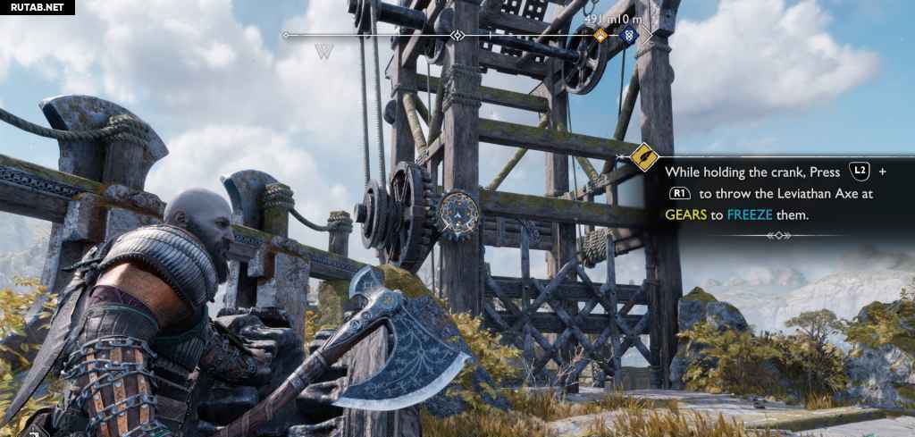 Уничтожьте еще одно гнездо, затем опустите подъемник и бросьте топор на механизм, чтобы заморозить его. Поднимитесь по стене к подъемнику и возьмите свой топор, чтобы подняться. Спрыгните на пол, чтобы сломать его.