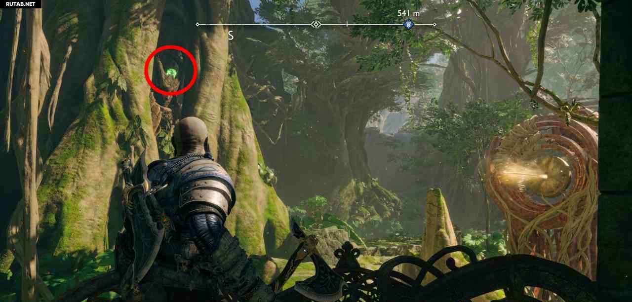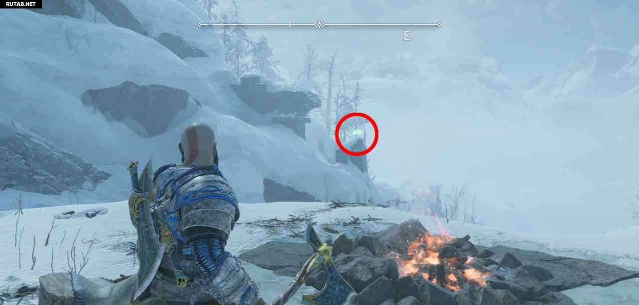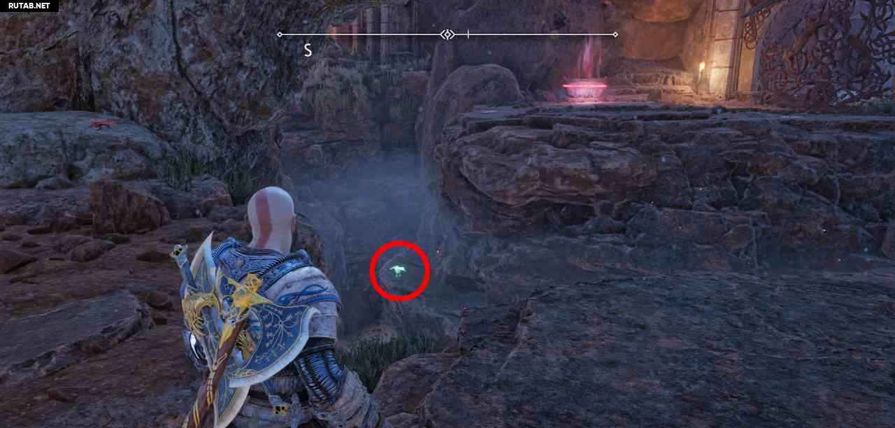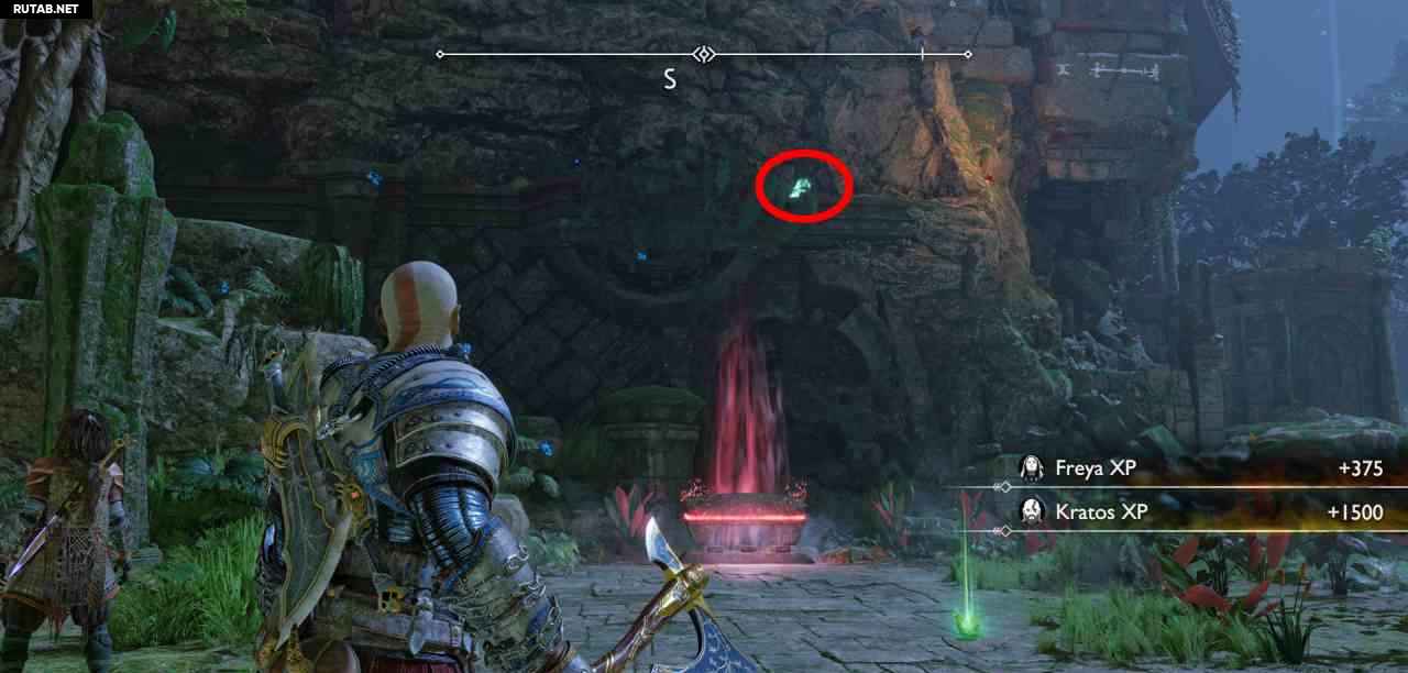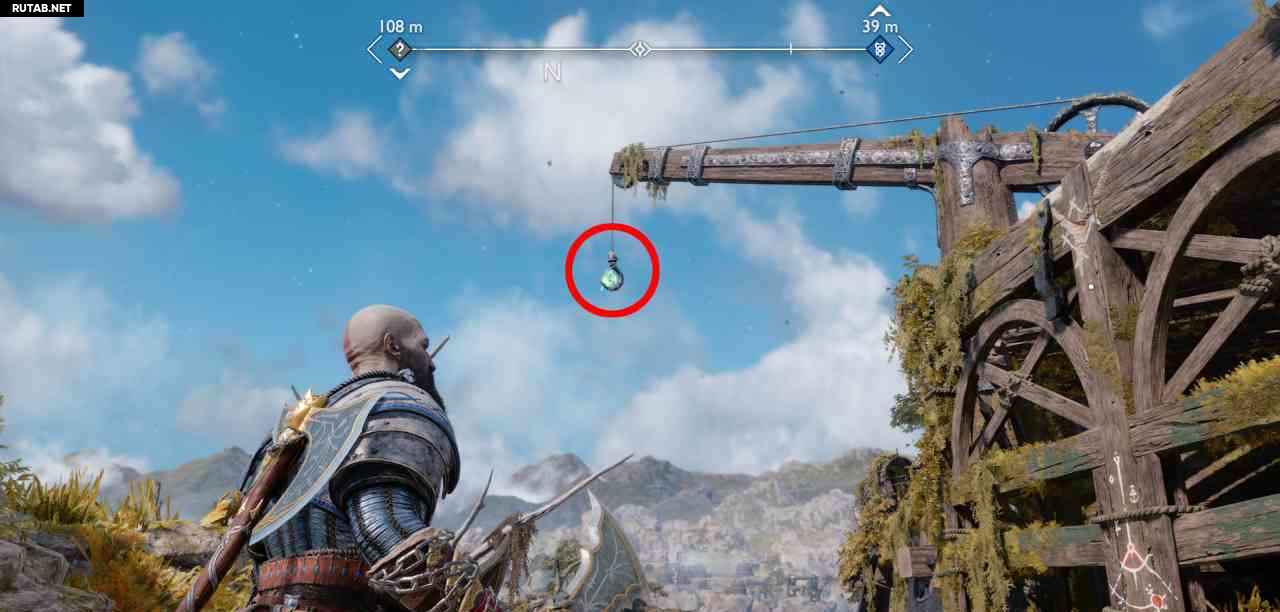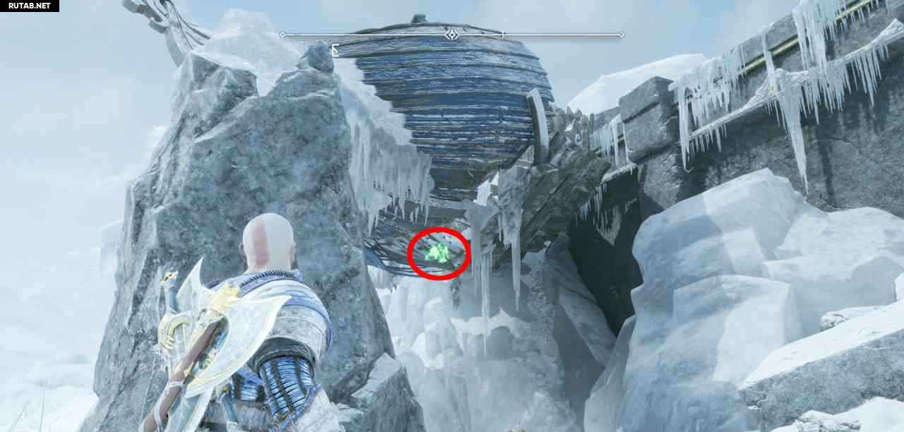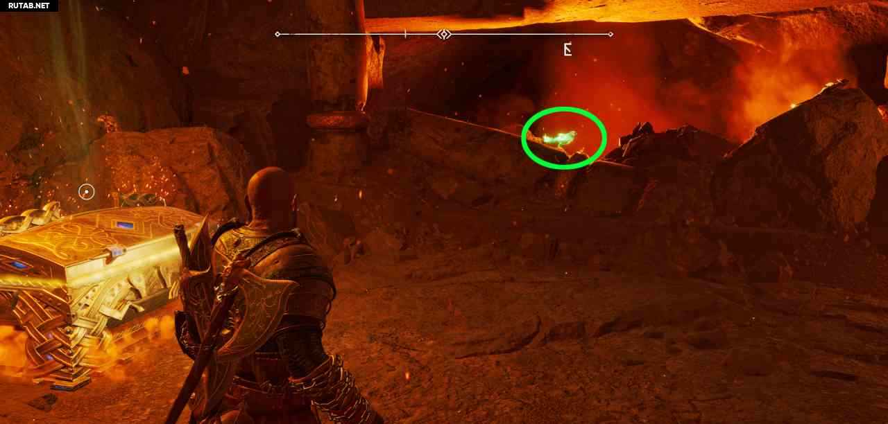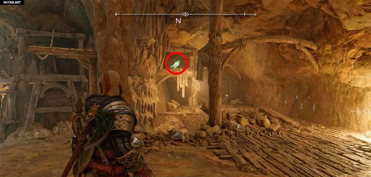 В первой комнате убейте врагов и пока игнорируйте сундук Норн. Поднимитесь по стене за сундуком Норн, затем убейте следующую группу врагов и поднимитесь по золотой цепи. Спрыгните с другой стороны, чтобы найти большую цепь, которую вы должны потянуть, это откроет весь регион, чтобы захватить другие предметы коллекционирования. С того места, где вы тянете эту большую цепь, вы можете увидеть ворона, сидящего на скалах рядом с большой статуей викинга. Легче попасть, если вы подниметесь по тропинке, откуда пришли, а затем бросите топор оттуда.