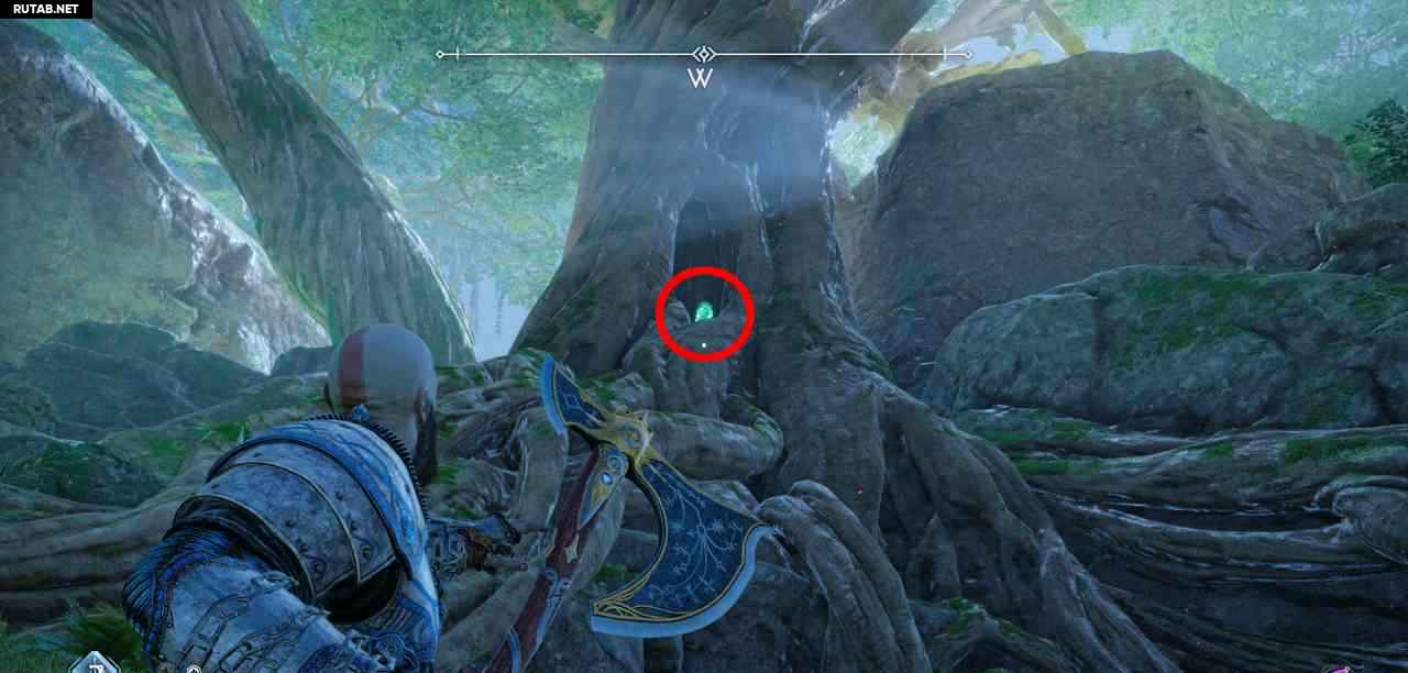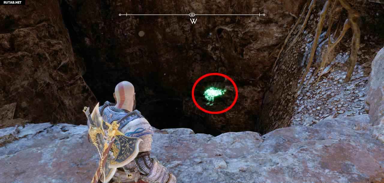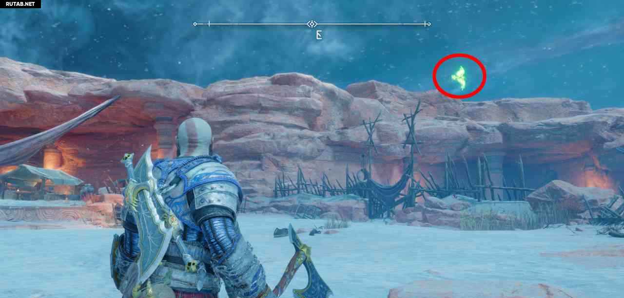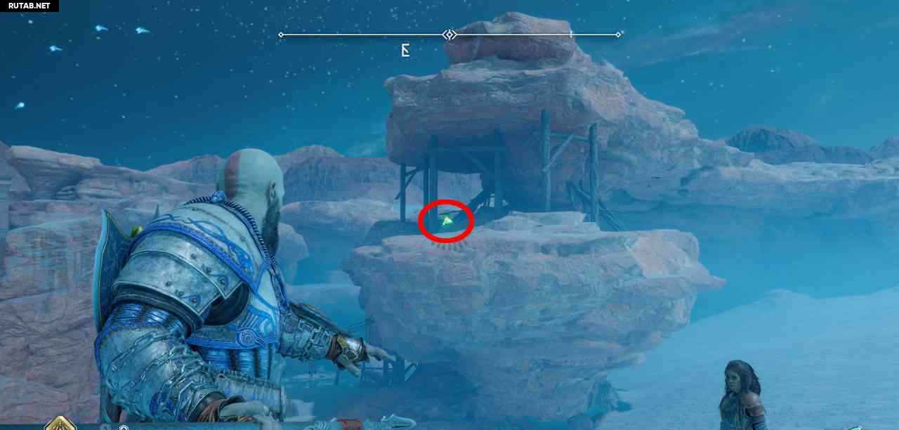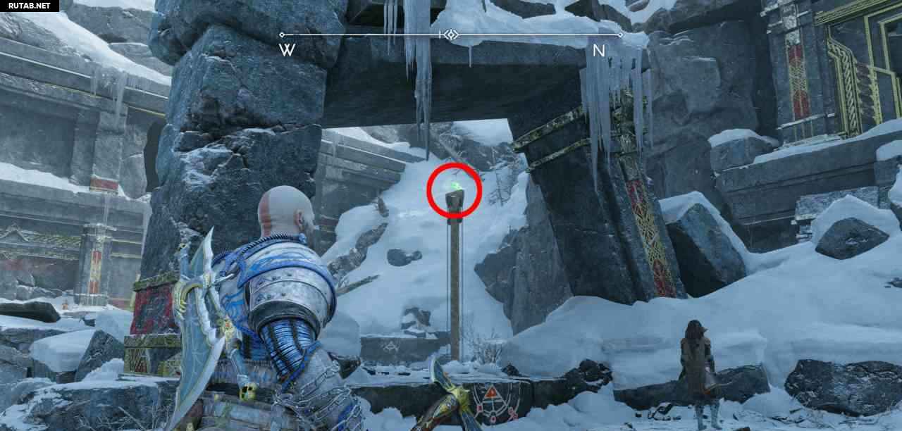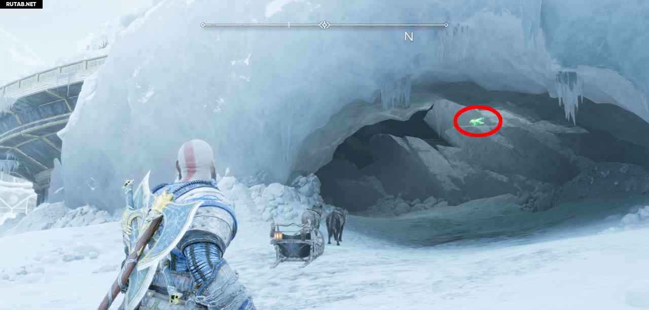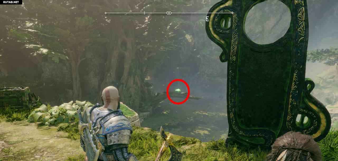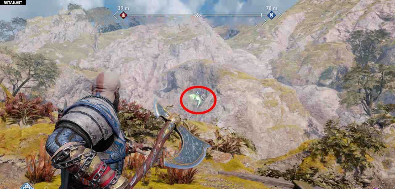 В первой комнате убейте врагов и пока игнорируйте сундук Норн. Поднимитесь по стене за сундуком Норн, затем убейте следующую группу врагов и поднимитесь по золотой цепи. Спрыгните с другой стороны, чтобы найти большую цепь, которую вы должны потянуть, это откроет весь регион, чтобы захватить другие предметы коллекционирования. С того места, где вы тянете эту большую цепь, вы можете увидеть ворона, сидящего на скалах рядом с большой статуей викинга. Легче попасть, если вы подниметесь по тропинке, откуда пришли, а затем бросите топор оттуда.