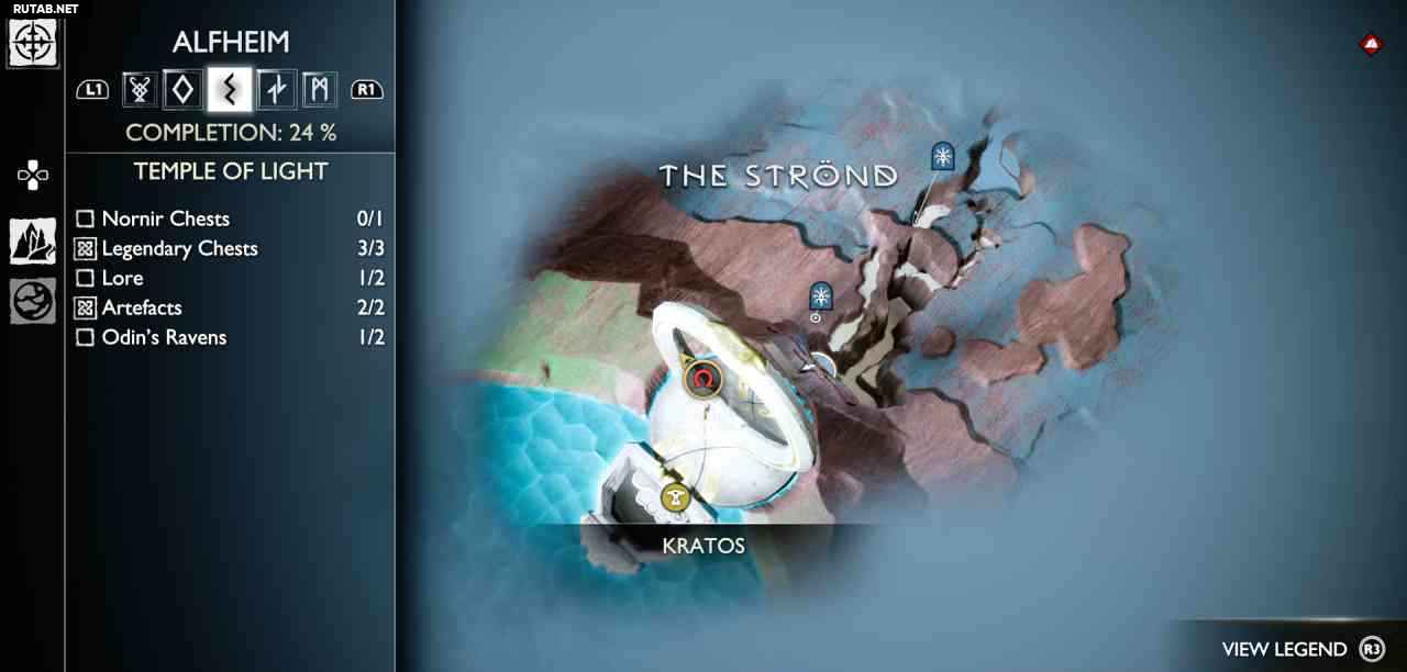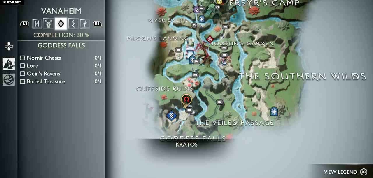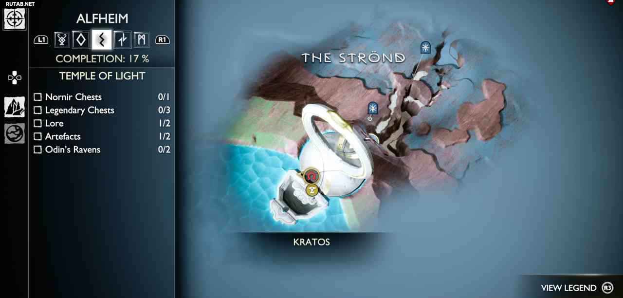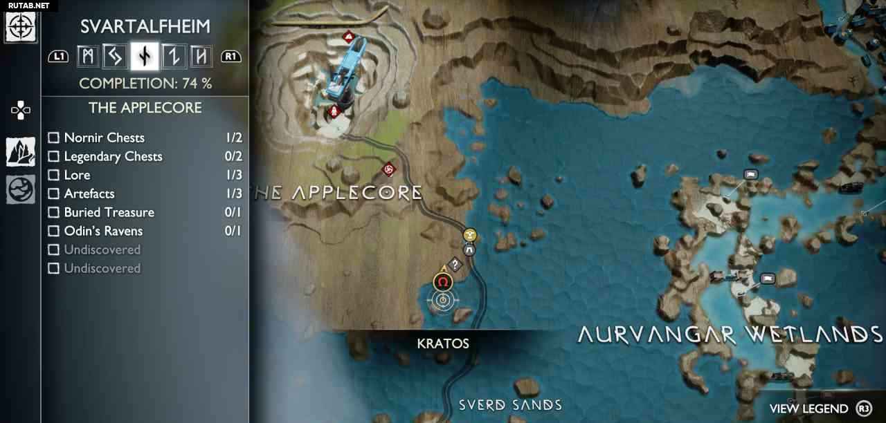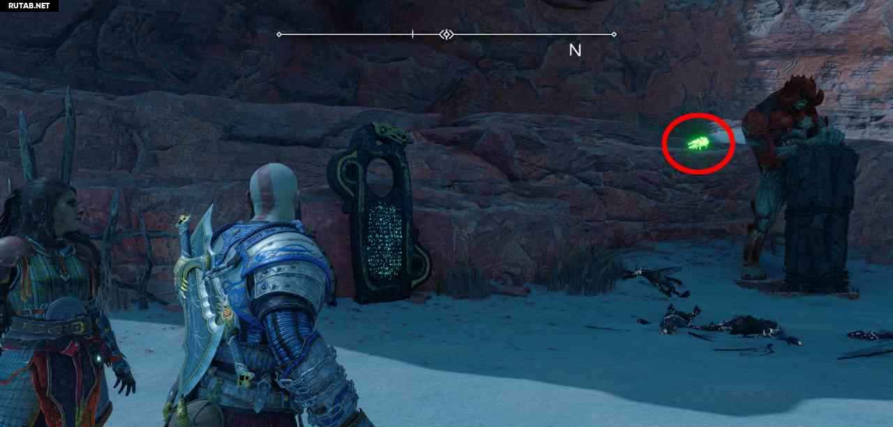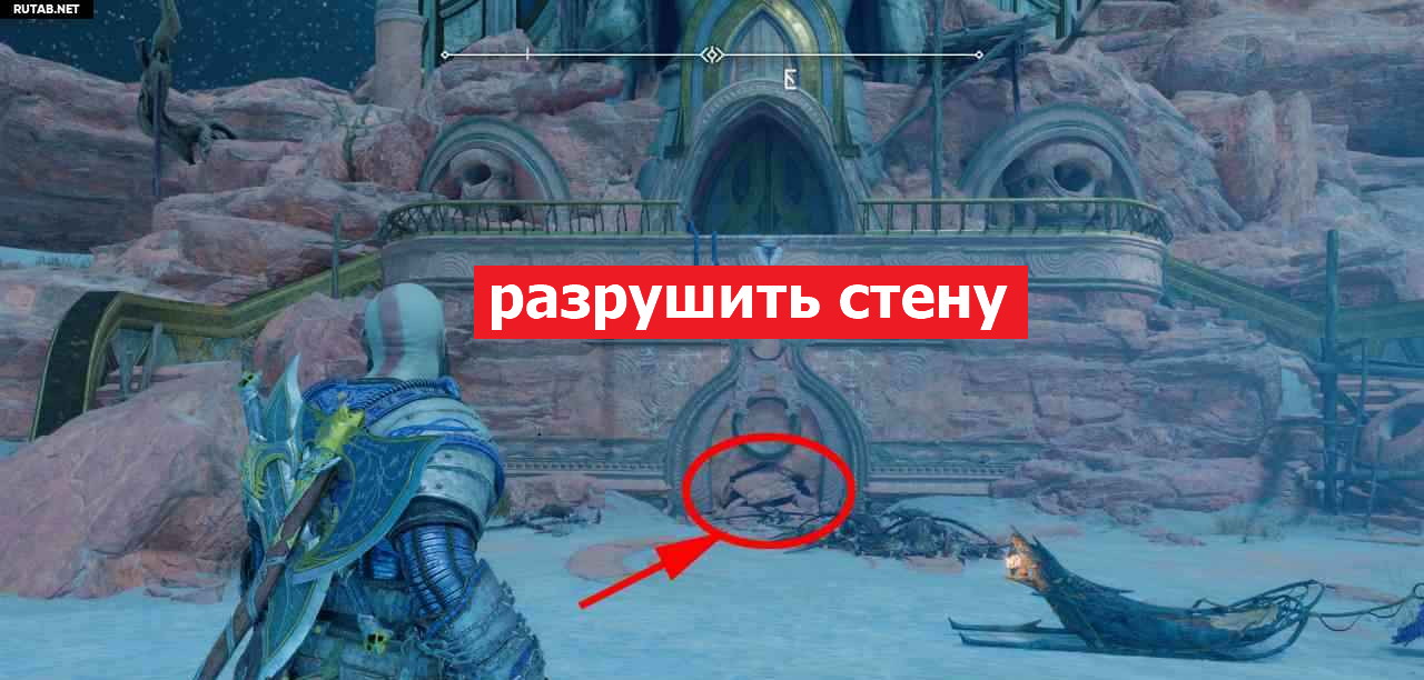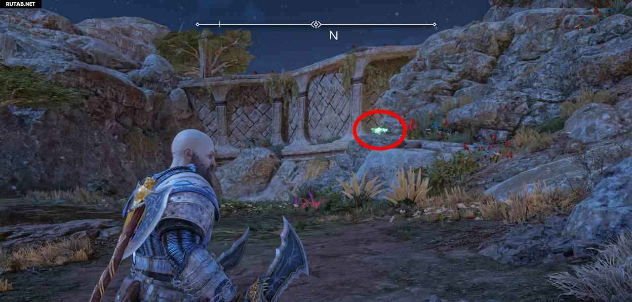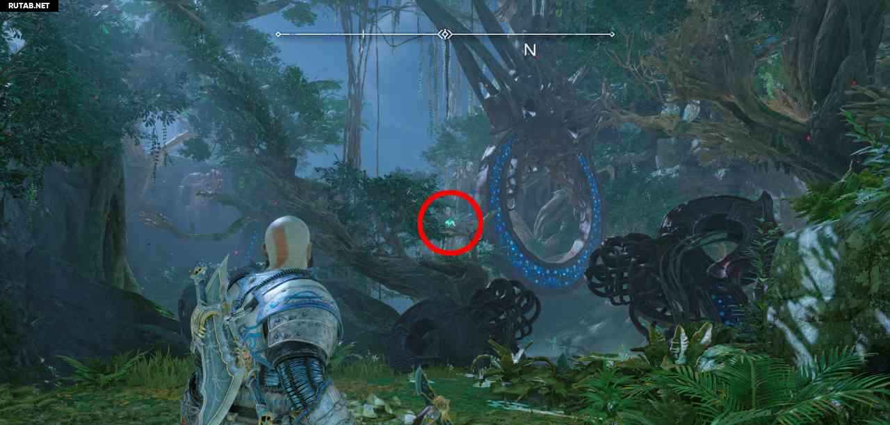 В первой комнате убейте врагов и пока игнорируйте сундук Норн. Поднимитесь по стене за сундуком Норн, затем убейте следующую группу врагов и поднимитесь по золотой цепи. Спрыгните с другой стороны, чтобы найти большую цепь, которую вы должны потянуть, это откроет весь регион, чтобы захватить другие предметы коллекционирования. С того места, где вы тянете эту большую цепь, вы можете увидеть ворона, сидящего на скалах рядом с большой статуей викинга. Легче попасть, если вы подниметесь по тропинке, откуда пришли, а затем бросите топор оттуда.