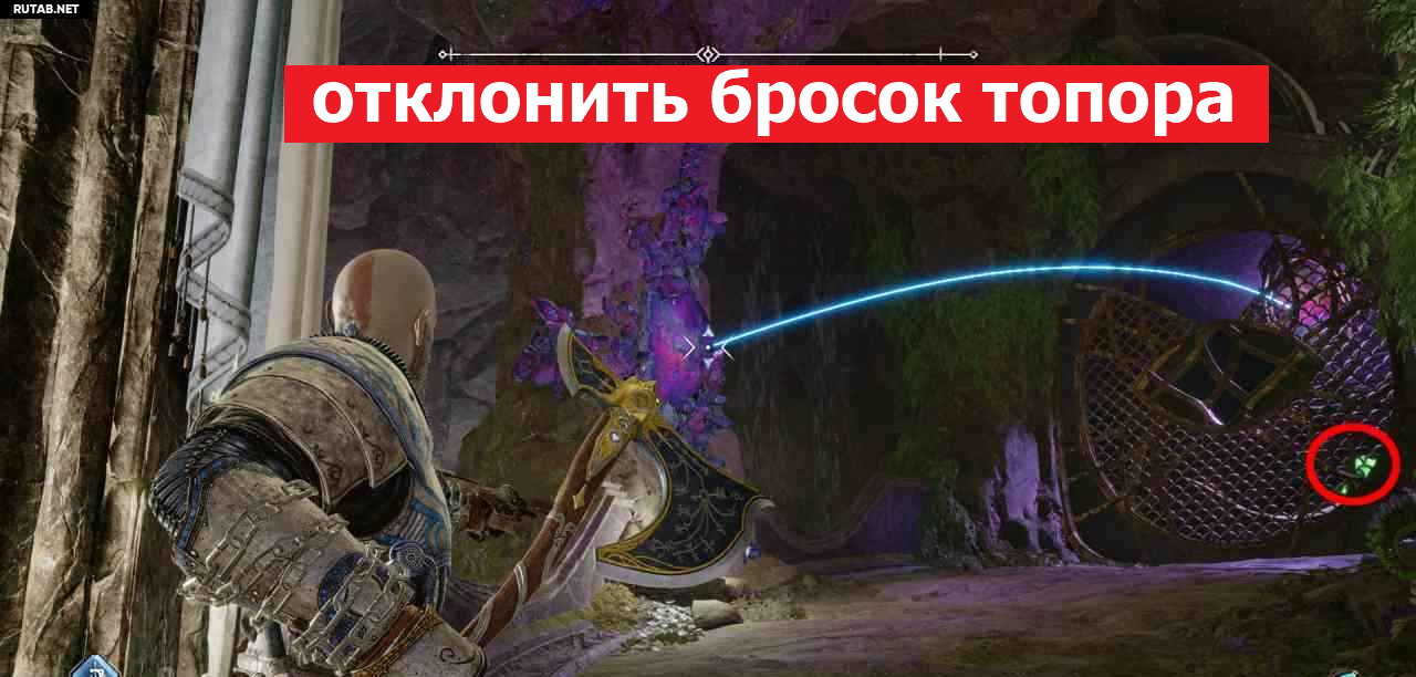 От мистических врат идите направо, ворон будет летать кругами над областью. Вы должны бросить в него топор. Просто подождите, пока он не полетит к вам, держите курсор в центре его траектории полета и бросьте топор прямо перед тем, как он полетит в ваш курсор.