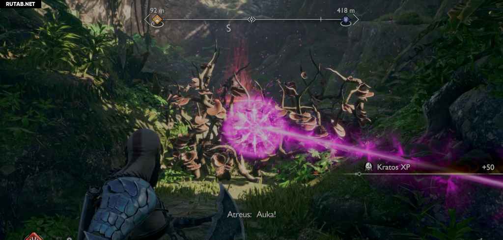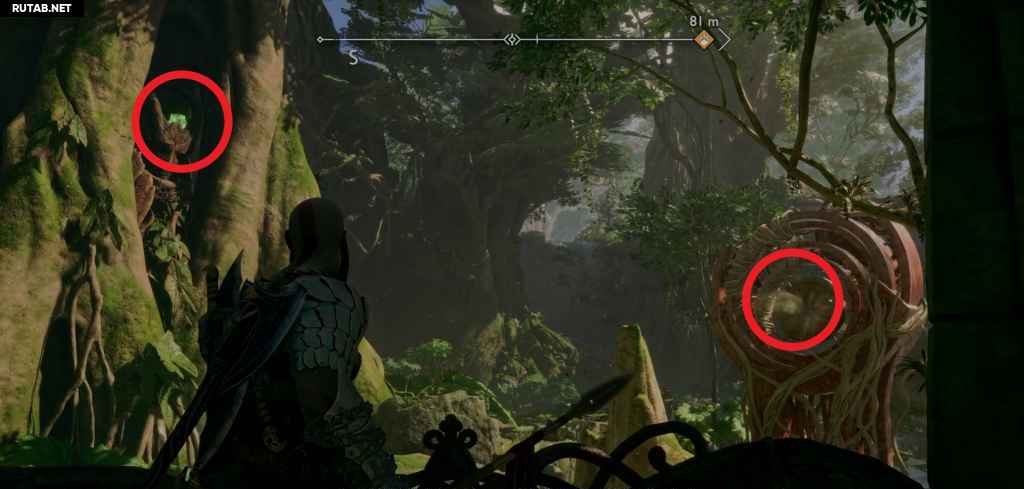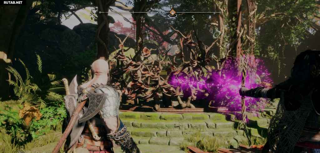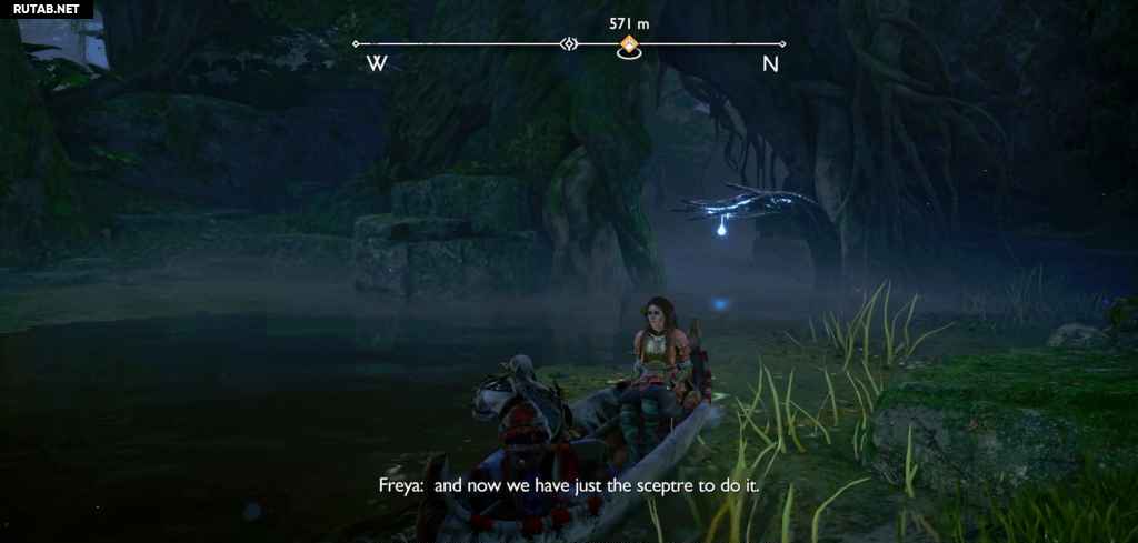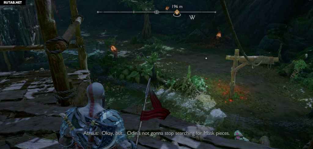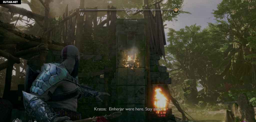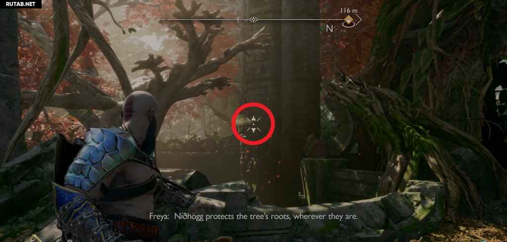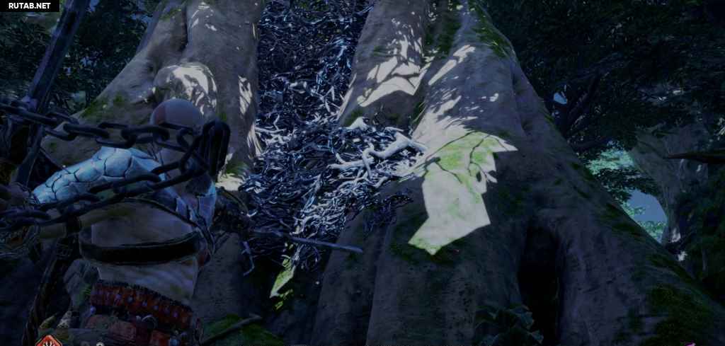Посадите лодку и следуйте по пути вперед, сражаясь с врагами на своем пути. Теперь вы возвращаетесь назад через область, через которую вы прошли с Фрейей после победы над Нидхёггом, поэтому она, вероятно, покажется вам знакомой. Когда вы доберетесь до другого перед корневым мостом, на вас нападут какие-то драугры, которых усиливает пара Ноккенов. Тот Ноккен, за которым вы можете просто следовать, так как он находится на земле с Драугром. Однако другой спрятан, и чтобы убить его, вам нужно сжечь ежевику на дереве напротив алтаря (что также мгновенно убивает Ноккена).