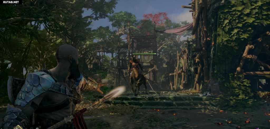 Следуйте за вором из комнаты, пройдя через новую дыру, проделанную в стене. После победы над парой врагов на вашем пути войдите в здание, а затем сразу же выйдите, и вы можете заметить ворона, сидящего на другом дереве. Затем вы также можете бросить свое копье в вентиляционное отверстие справа, чтобы преследовать вора.