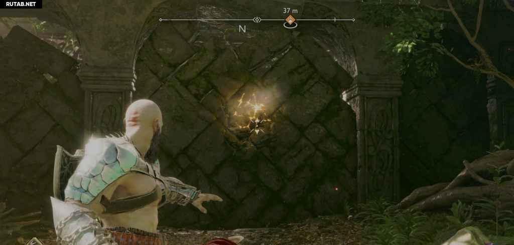 Перейдите на другую сторону платформы, где вы можете прыгнуть на стену, переместившись туда, где находится сундук, чтобы вы могли получить Рев Левиафана (тяжелая руническая атака топора).