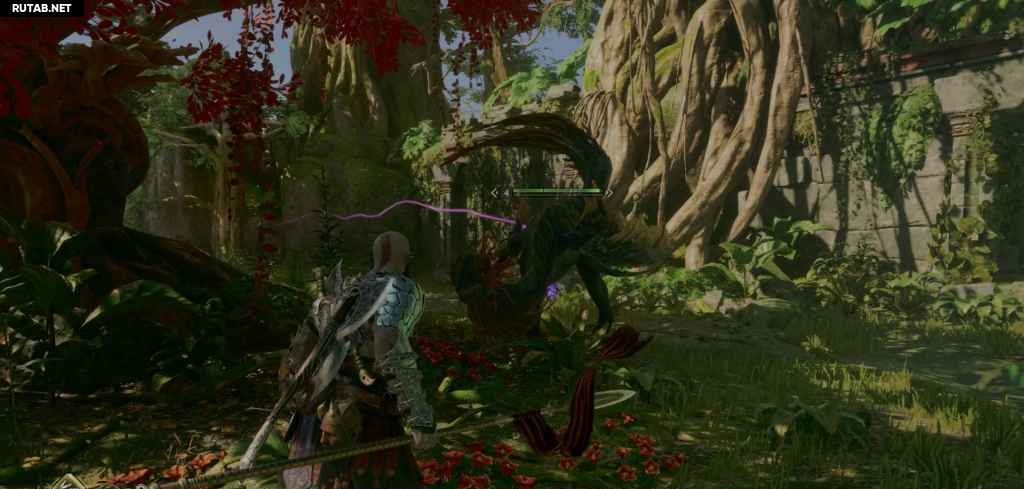 На обратном пути, когда вы доберетесь до области со структурой посередине, вас атакуют сразу два Дреки, хотя они не будут усиленными, как предыдущие. Если у вас есть спартанская ярость, вы можете вылить всю свою ярость на одного, чтобы почти сразу убить одного дреки, даже на более высоких уровнях сложности. Это также полностью зарядит вашу способность экипированного оружия, с помощью которой можно быстро прикончить первого дреки. Второй Дреки, скорее всего, будет прятаться в воде, плюясь в вас ядом, но как только он выйдет, он будет похож на обычного Дреки без особой угрозы. Уклоняйтесь/блокируйте его атаки и используйте свои рунические способности/способности компаньона, чтобы быстро справиться с ним. После того, как они будут побеждены, не забудьте собрать предметы, которые они выпадают, чтобы получить Артиллерию Древних (тяжелая руническая атака копьем) и пламя хаоса (обновление клинков).