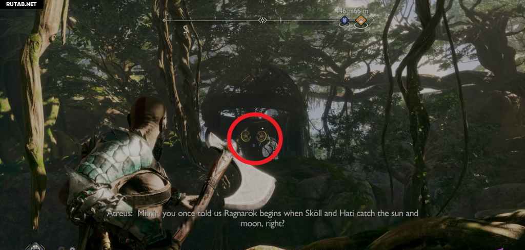 После того, как с ними обоими будет покончено, вы можете подойти к дереву и направить Атрея забрать луну из контейнера.