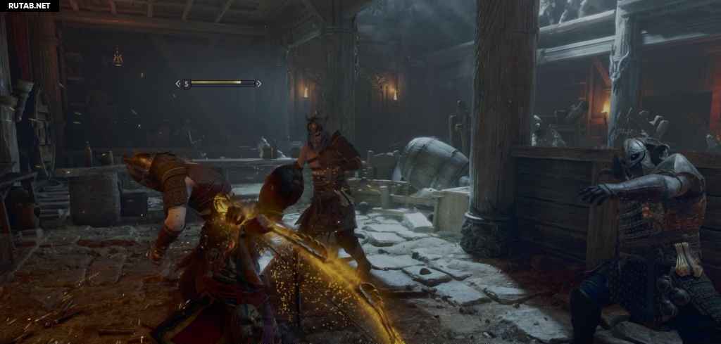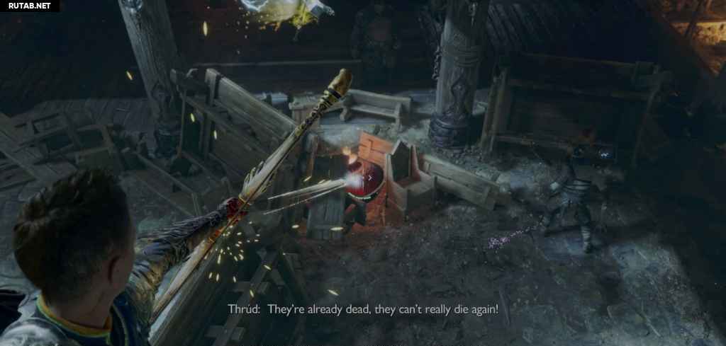 Следуйте за ней сквозь толпу внутри, пока не встретитесь с Тором. После короткого разговора вы попадете в крупную драку с Эйнхериями внутри здания. У вас не будет своих стрел для большей части этой области, поэтому вам придется довольствоваться рукопашным боем и той помощью, которую иногда оказывают другие персонажи. Просто продолжайте двигаться по области, побеждая врагов.