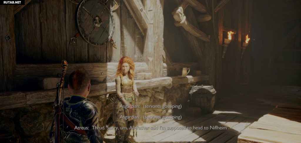 Вам нужно найти Тора, чтобы он пришел в Нифльхейм. Вы можете немного осмотреться, если хотите, но чтобы найти его, вам нужно пройти к передней части домика у стола, чтобы найти Труда.