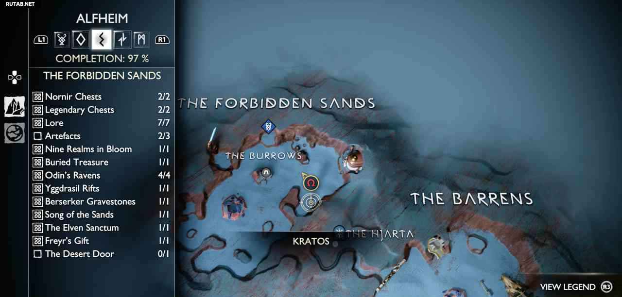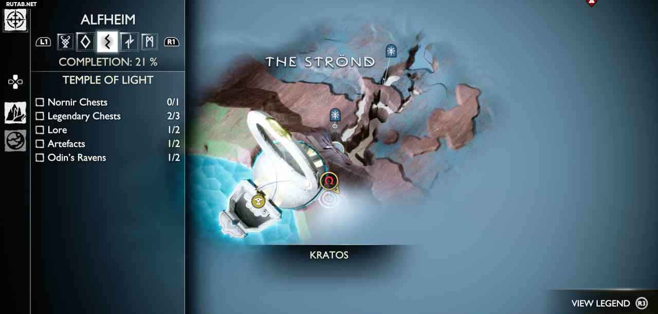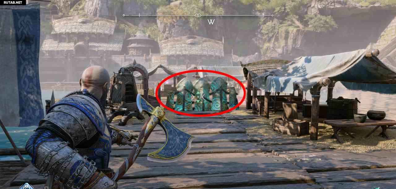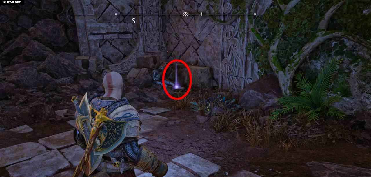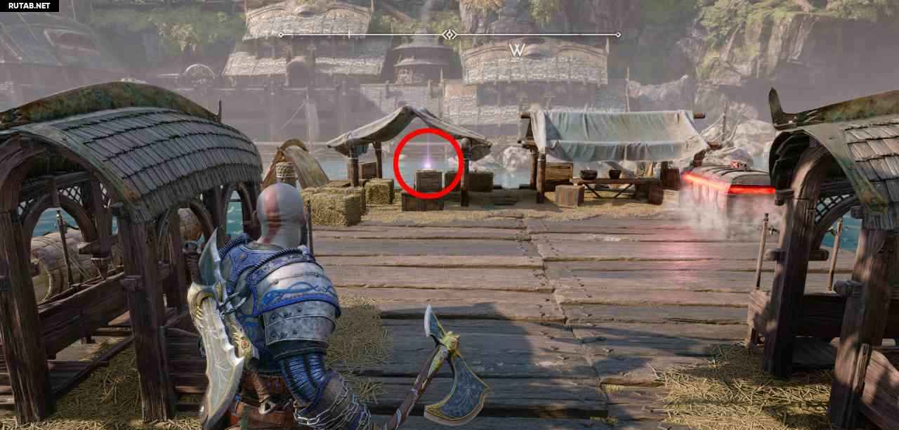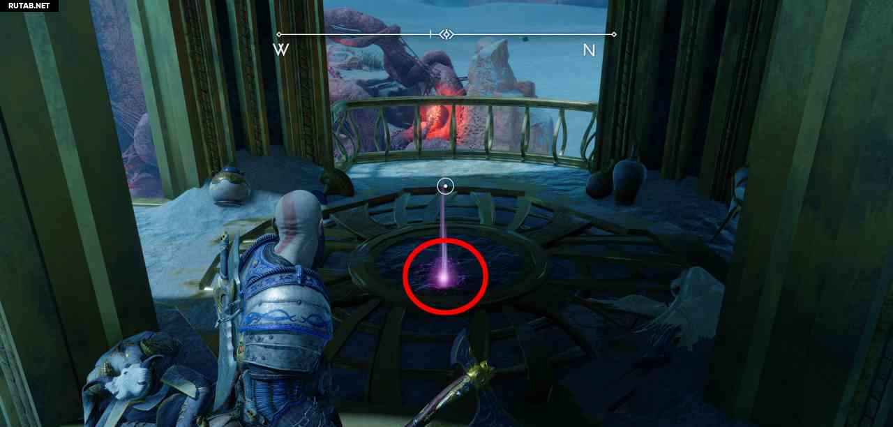 После того, как Кратос толкнет ворота, слева будет деревянное колесо, которое вы можете повернуть. Повернув его, забирайтесь обратно наверх, за следующей аркой артефакт находится слева.