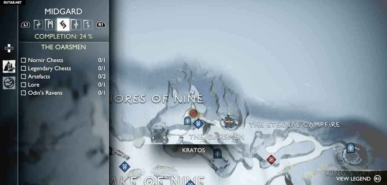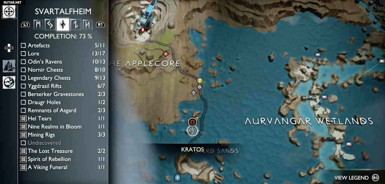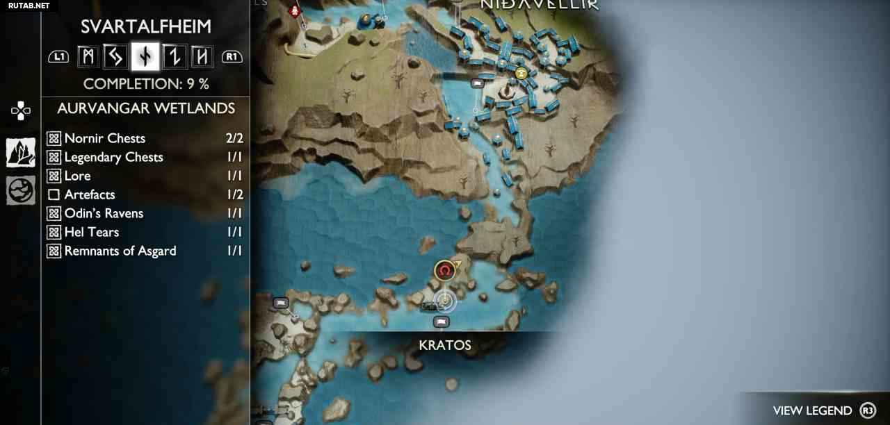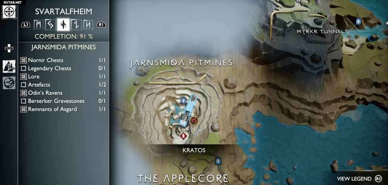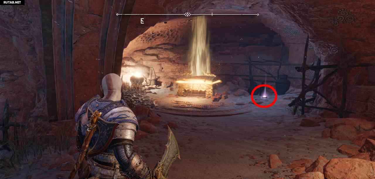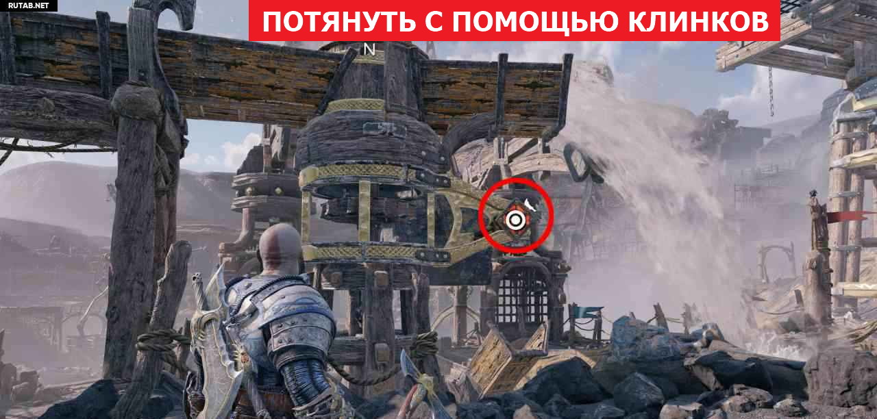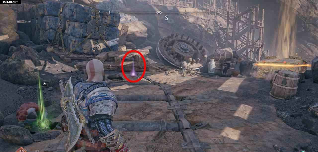 Рядом с надгробием берсерка на выходе из шахт используйте свои лезвия, чтобы потянуть водный путь к себе (см. 2-е изображение ниже). Это перенаправит воду для питания крана, подождите несколько секунд, пока кран поднимет вам большой каменный блок. Поднимитесь на каменный блок, затем бросьте свой топор в конец водного пути, чтобы заморозить воду (3-е изображение ниже). Это отключит кран, и он повернется назад, оставайтесь на вершине каменного блока. В конце вы можете свесить каменный блок и перепрыгнуть на холм за краном. Артефакт и легендарный сундук здесь.