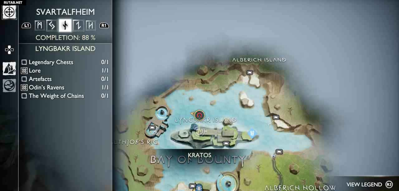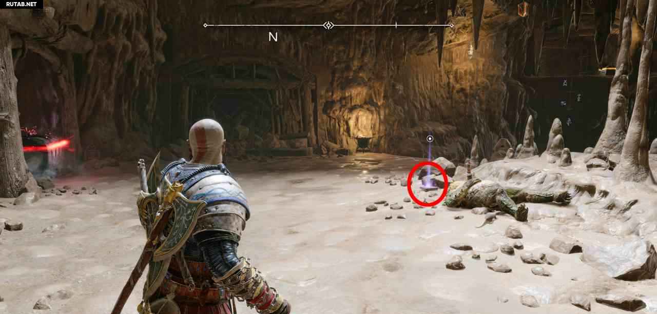 ^ Продвигайтесь по локации прямо, пока не пройдете небольшой участок туннеля в пещере, после выхода из пещеры спрыгните вниз по уступу прямо вперед. Здесь слева есть Артефакт (светящийся фиолетовым) и Легендарный сундук.