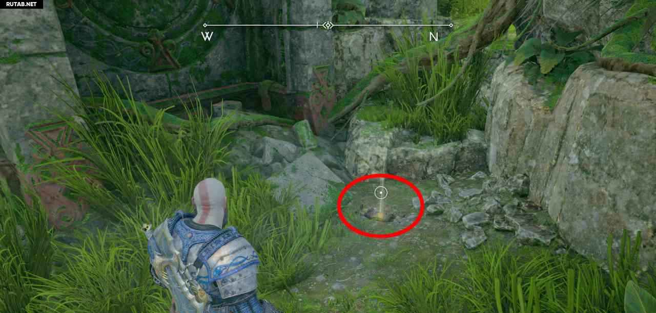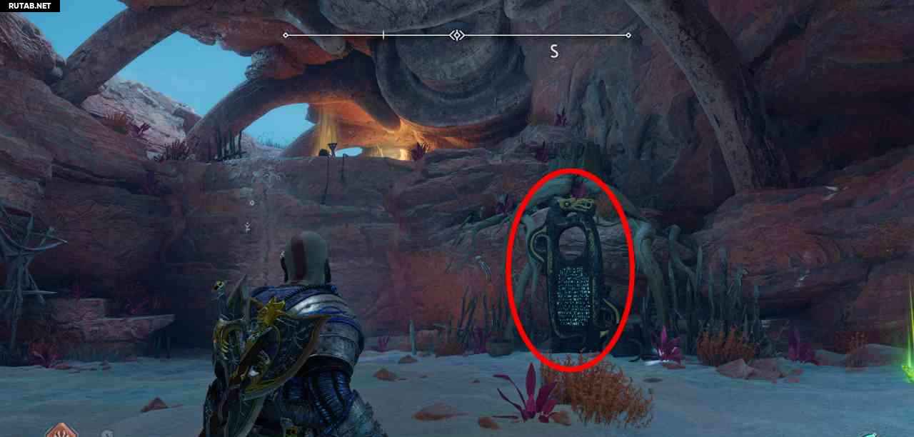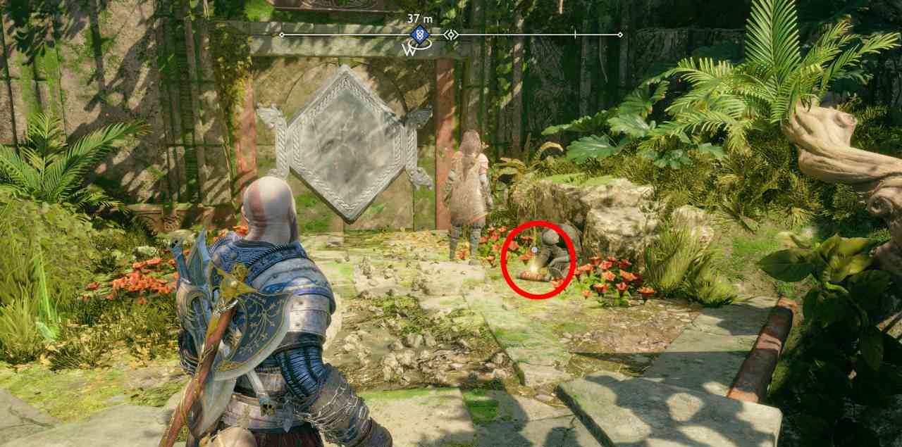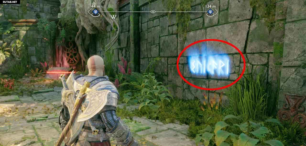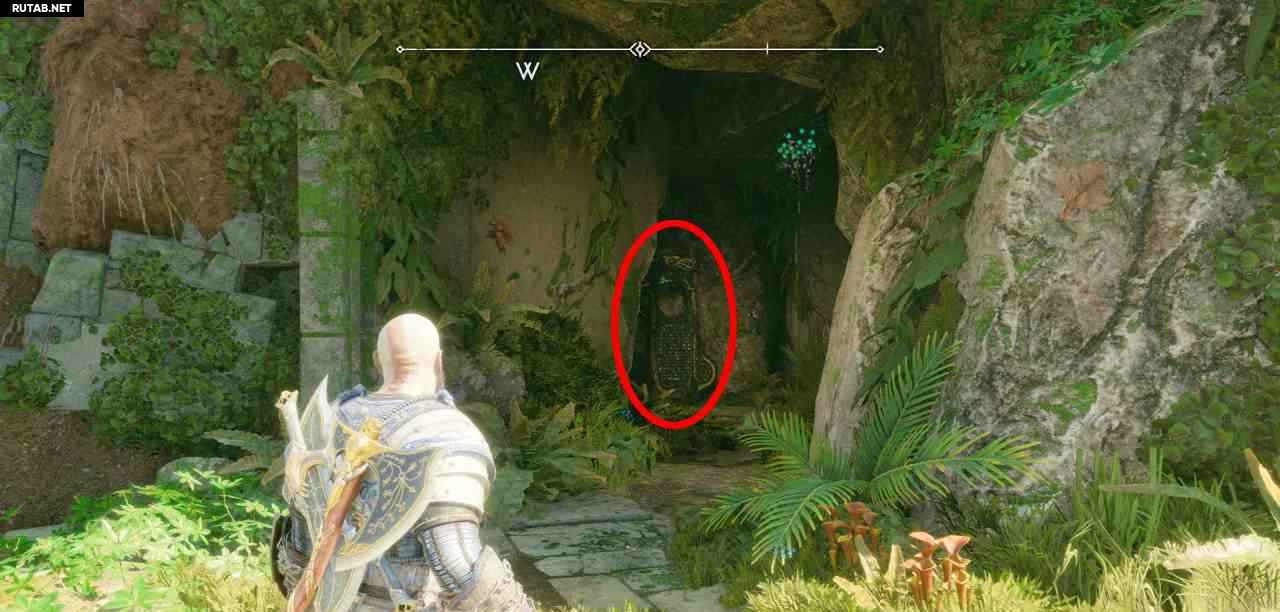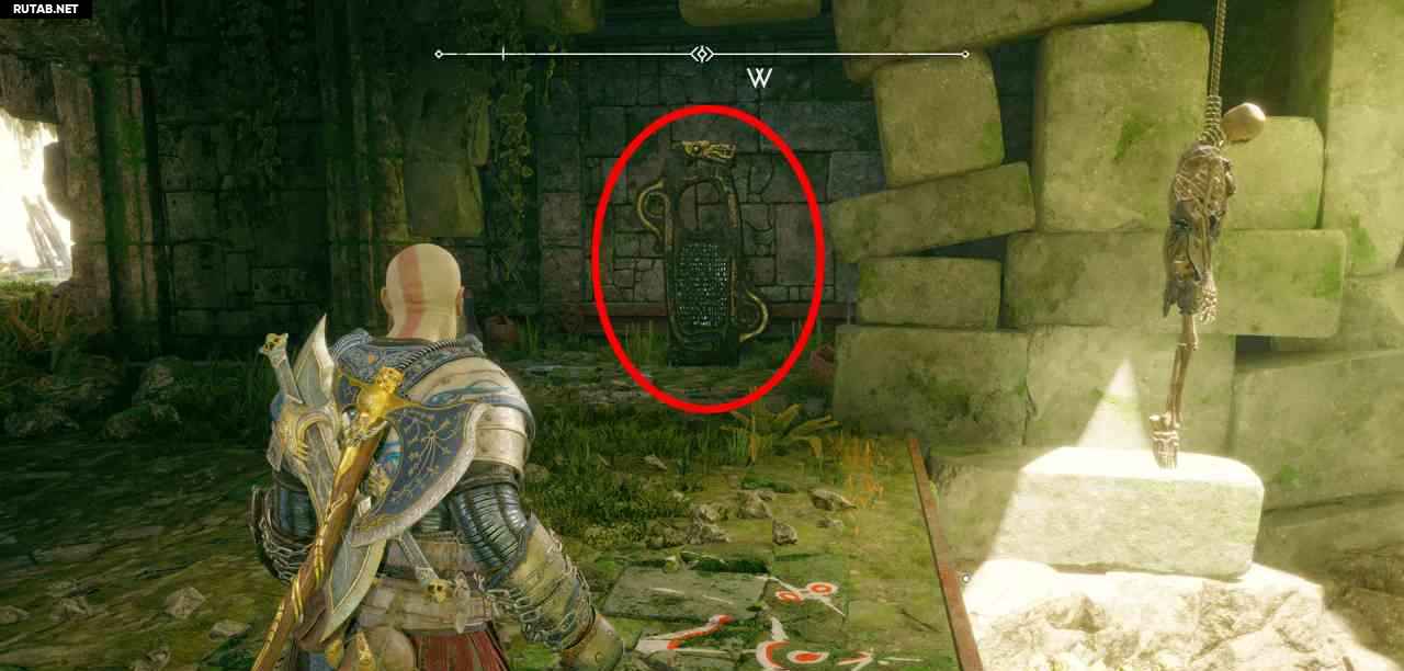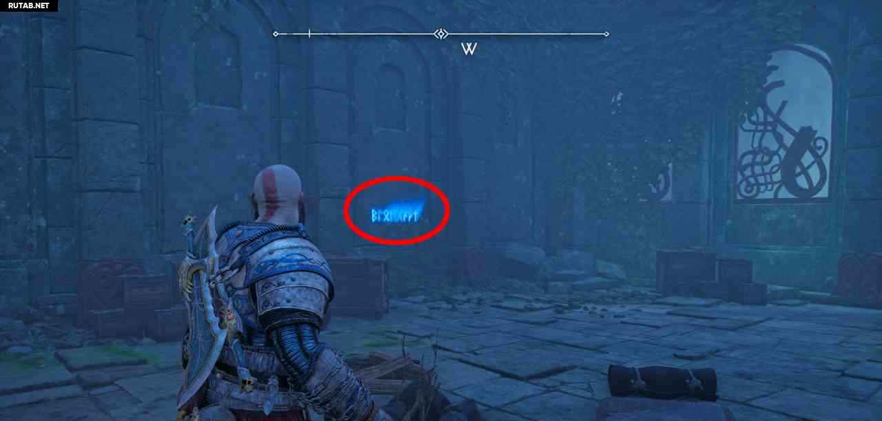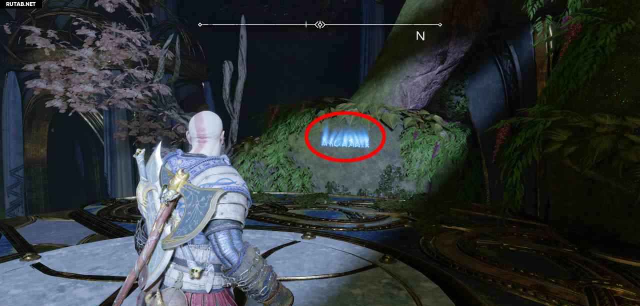 После получения вещей Фрейи используйте долото на алтаре справа. Затем спускайтесь обратно в основную зону. Теперь идите к воротам слева от того места, где вы впервые вошли в этот район. Вы должны зажечь две жаровни над воротами одновременно. Сначала очистите лианы под левой жаровней. Затем выстрелите 3 фиолетовыми руническими стрелами между двумя жаровнями и атакуйте их своими Клинками Хаоса, это зажжет обе жаровни одновременно. После этих ворот лор находится справа. Ищите синие буквы на стене. Сначала вы должны очистить врага, чтобы сделать это, сожгите лозы слева, чтобы подняться по тропе и победить маленьких монстров, которые усиливают другого врага.