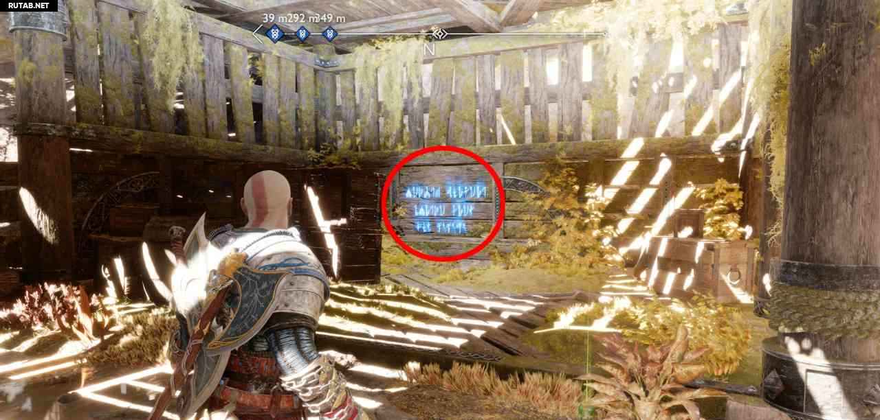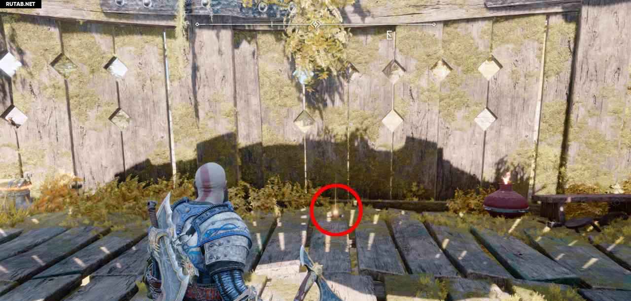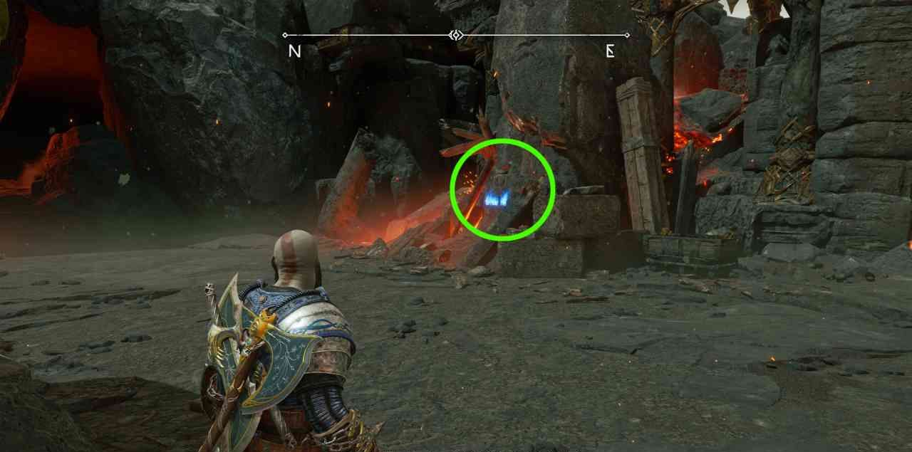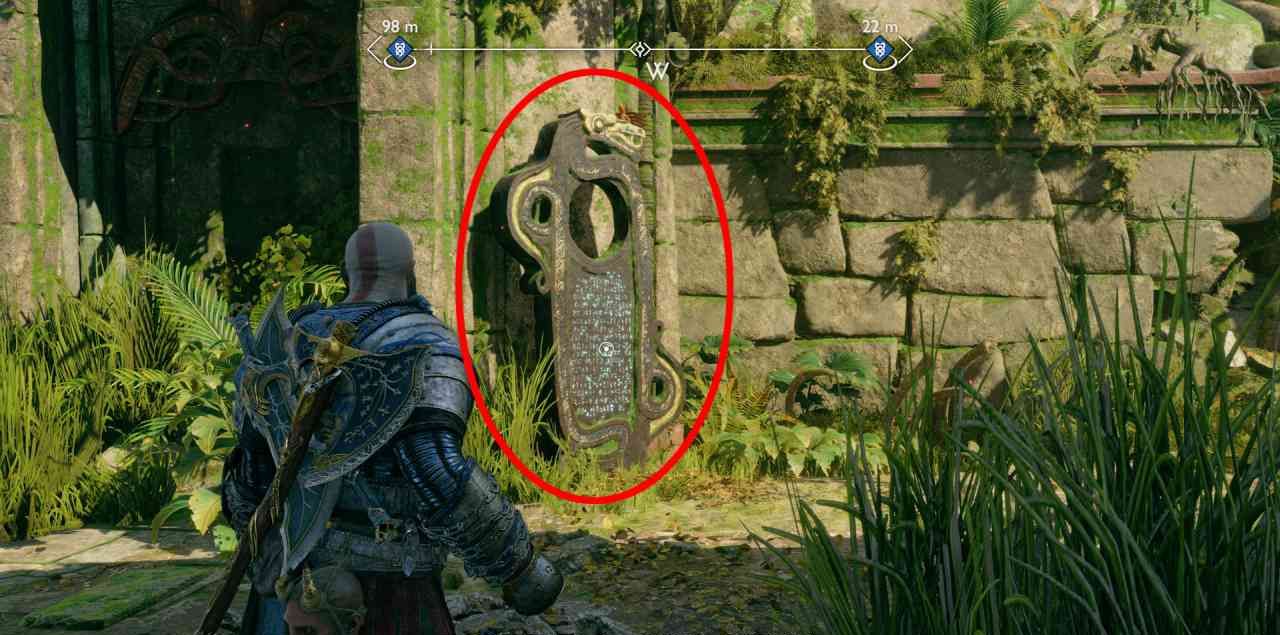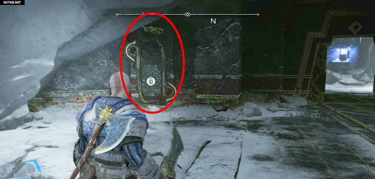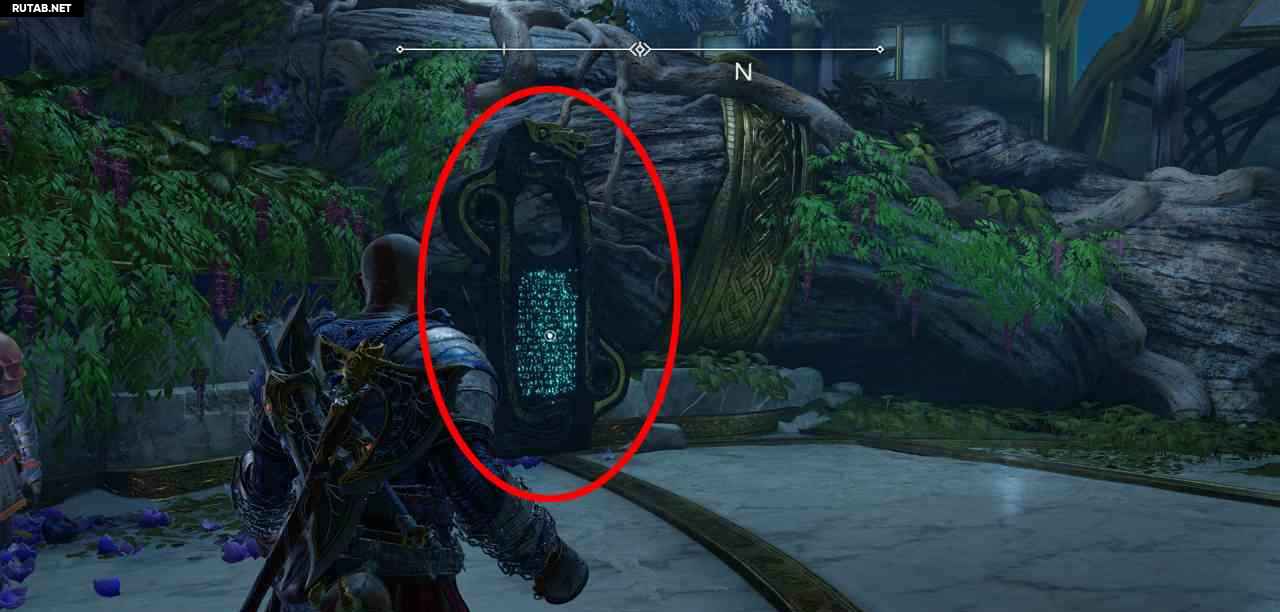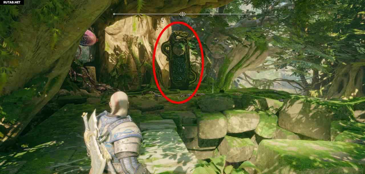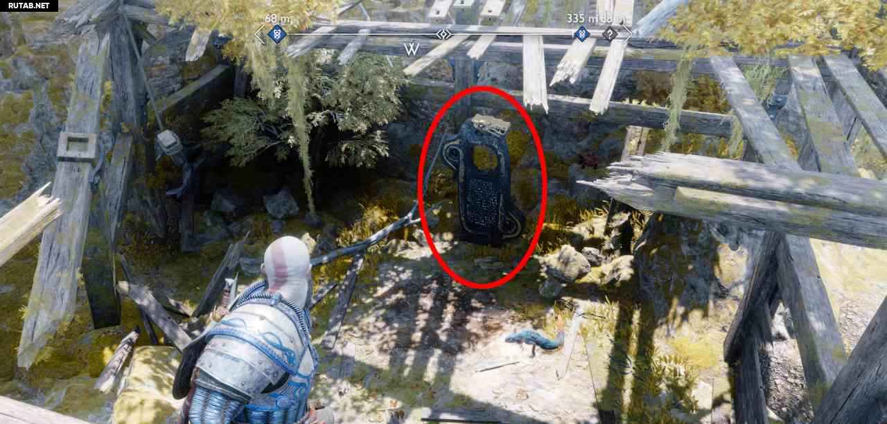 После получения вещей Фрейи используйте долото на алтаре справа. Затем спускайтесь обратно в основную зону. Теперь идите к воротам слева от того места, где вы впервые вошли в этот район. Вы должны зажечь две жаровни над воротами одновременно. Сначала очистите лианы под левой жаровней. Затем выстрелите 3 фиолетовыми руническими стрелами между двумя жаровнями и атакуйте их своими Клинками Хаоса, это зажжет обе жаровни одновременно. После этих ворот лор находится справа. Ищите синие буквы на стене. Сначала вы должны очистить врага, чтобы сделать это, сожгите лозы слева, чтобы подняться по тропе и победить маленьких монстров, которые усиливают другого врага.