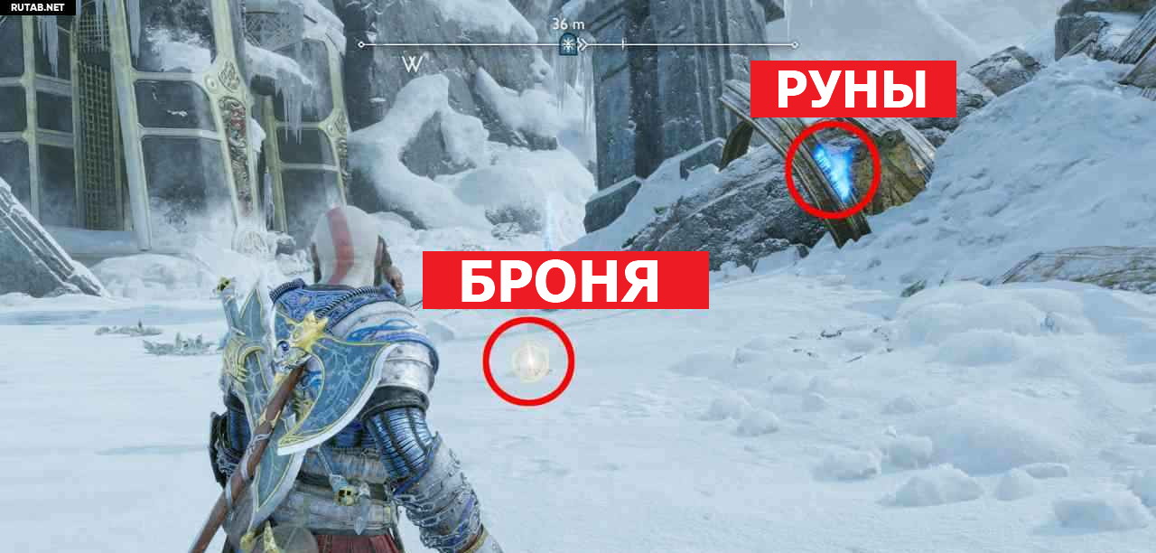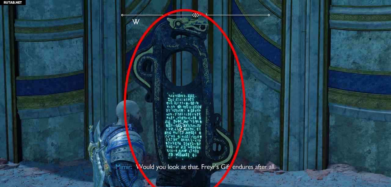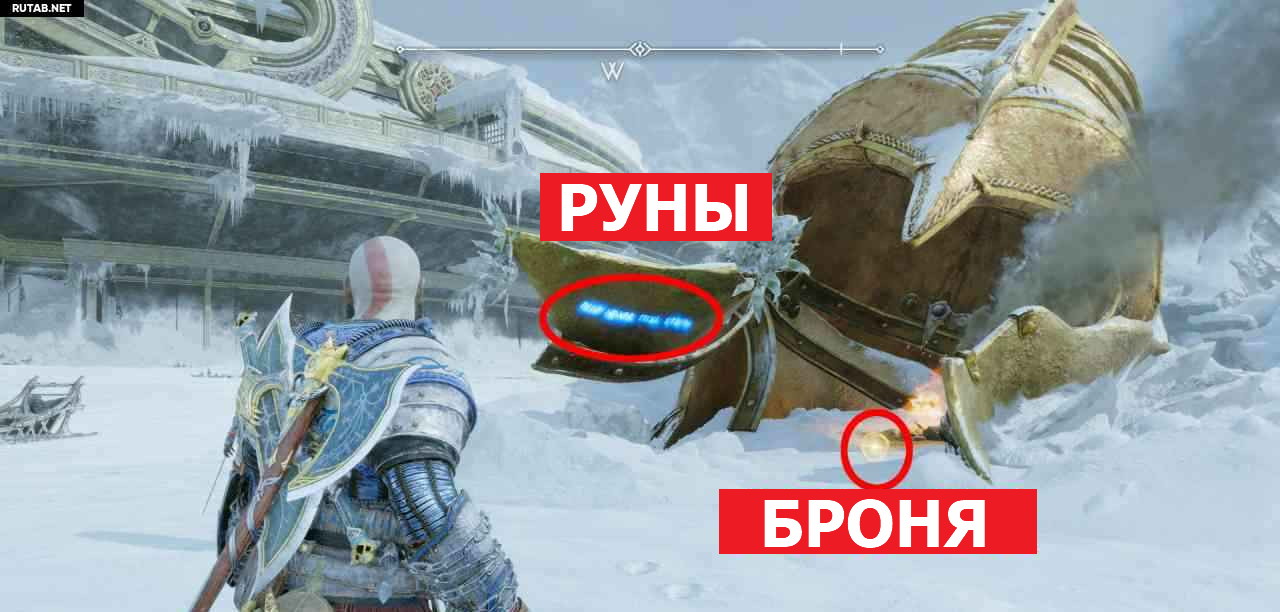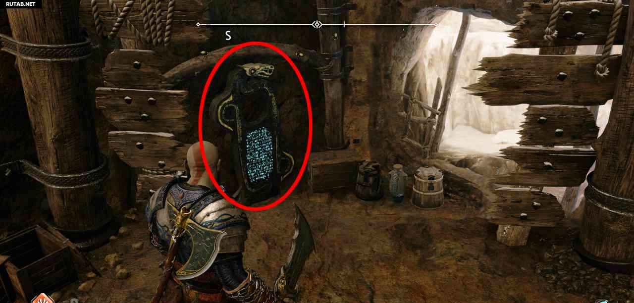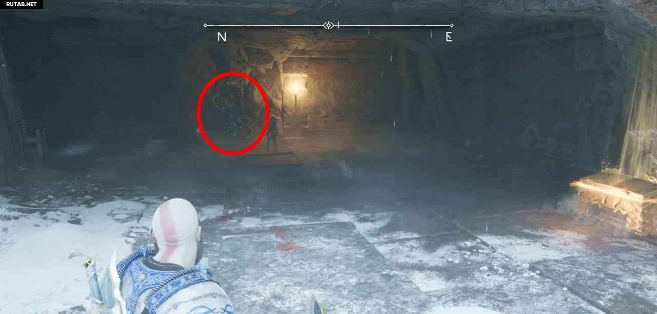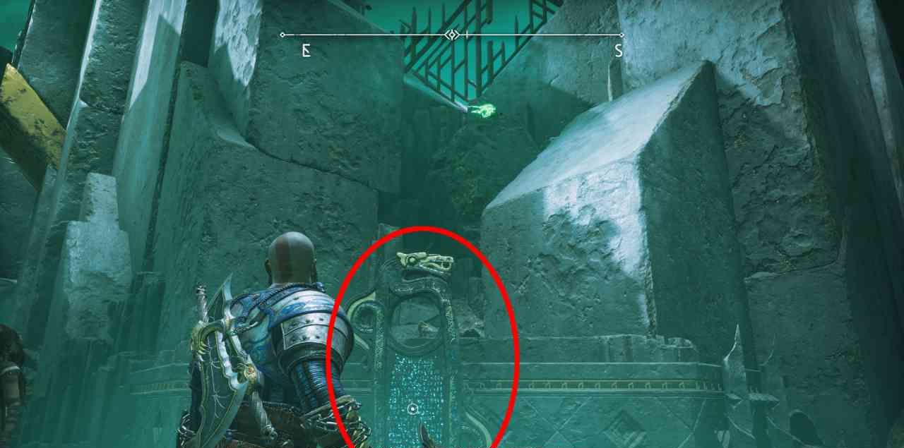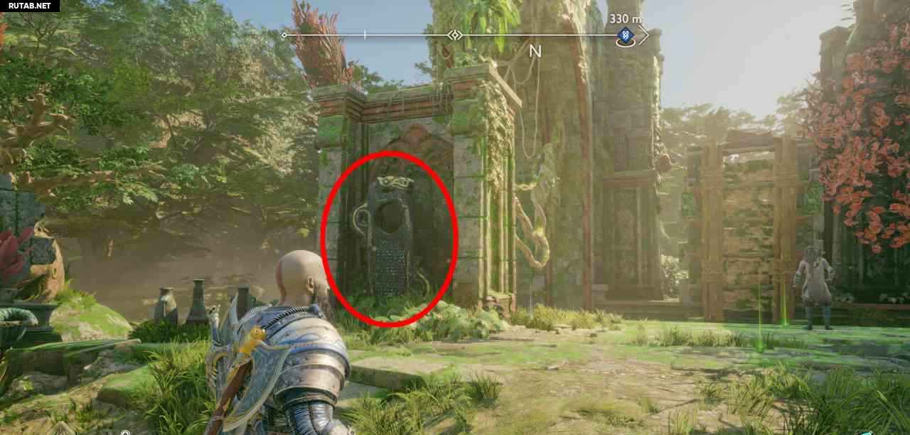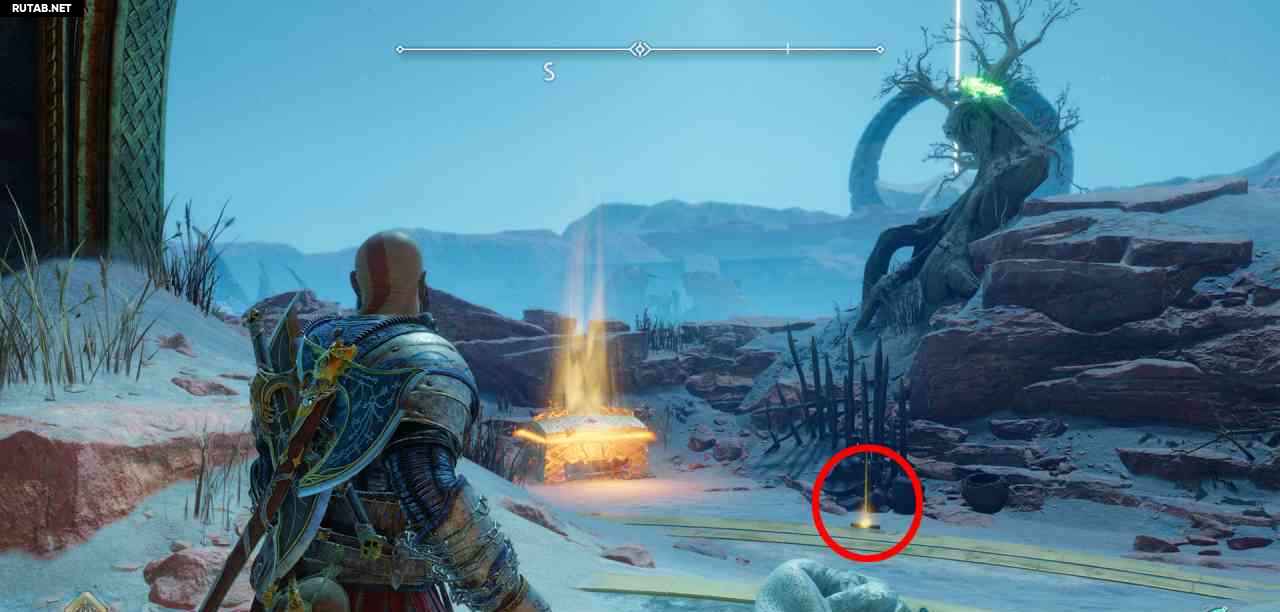 После получения вещей Фрейи используйте долото на алтаре справа. Затем спускайтесь обратно в основную зону. Теперь идите к воротам слева от того места, где вы впервые вошли в этот район. Вы должны зажечь две жаровни над воротами одновременно. Сначала очистите лианы под левой жаровней. Затем выстрелите 3 фиолетовыми руническими стрелами между двумя жаровнями и атакуйте их своими Клинками Хаоса, это зажжет обе жаровни одновременно. После этих ворот лор находится справа. Ищите синие буквы на стене. Сначала вы должны очистить врага, чтобы сделать это, сожгите лозы слева, чтобы подняться по тропе и победить маленьких монстров, которые усиливают другого врага.