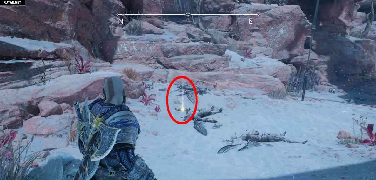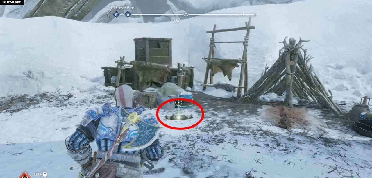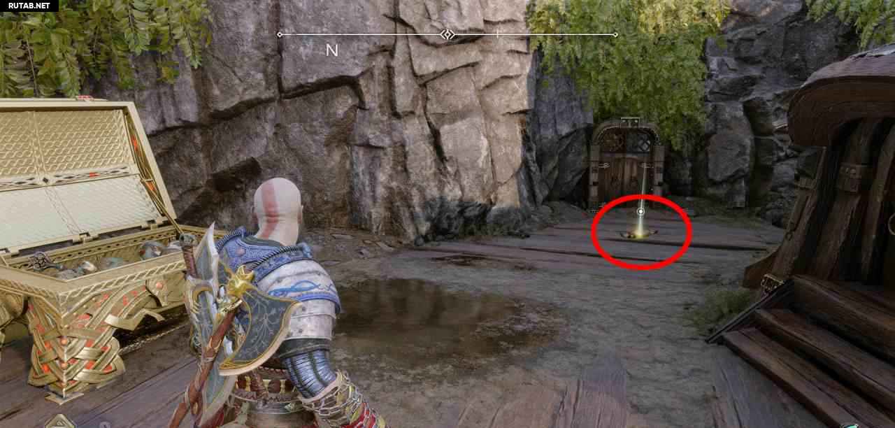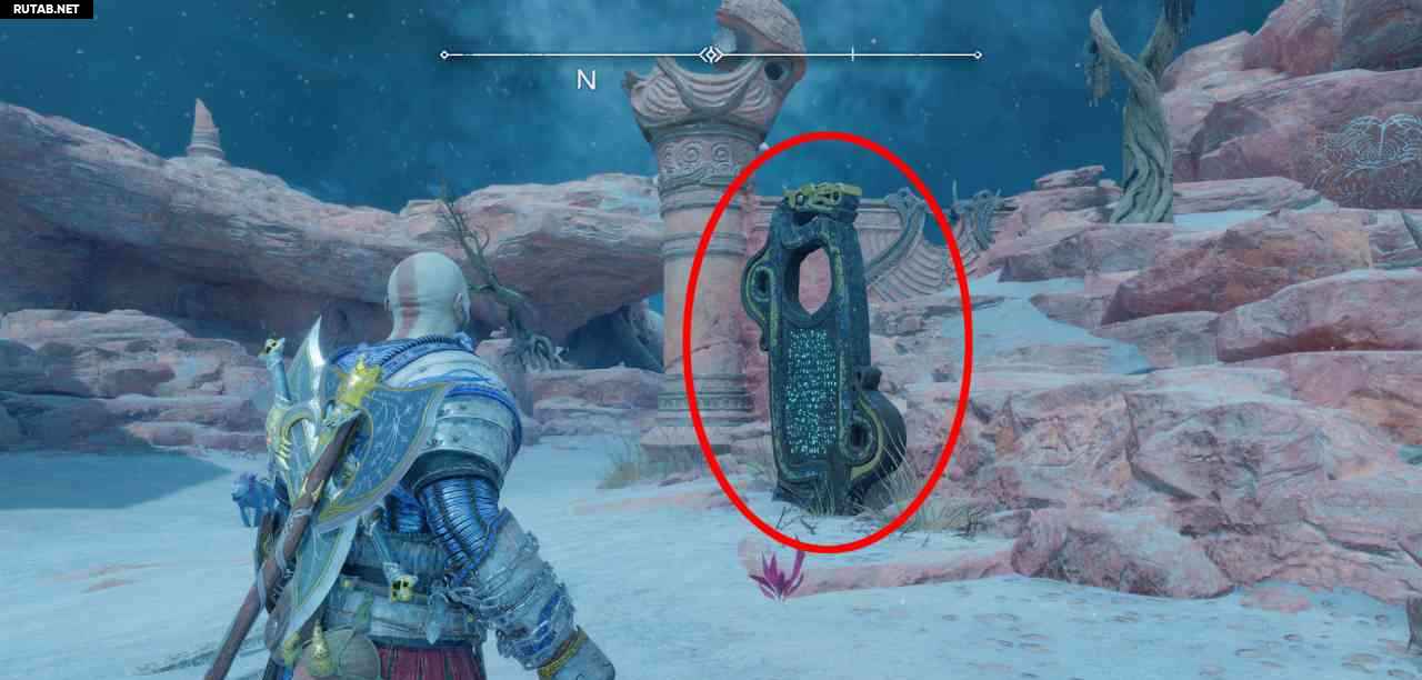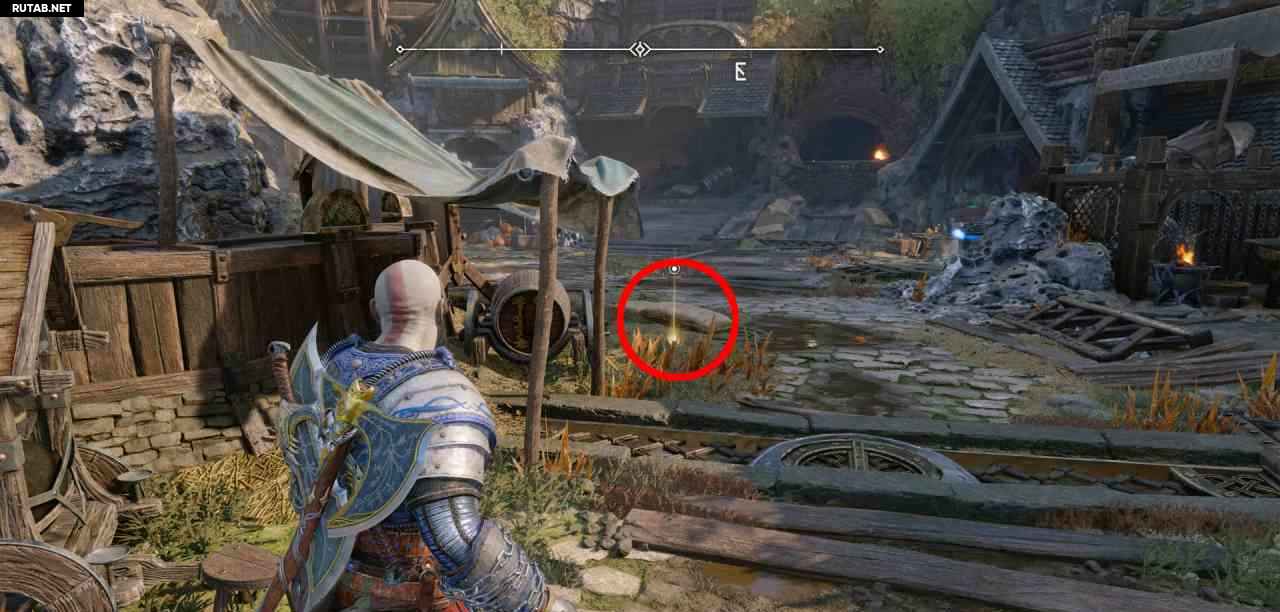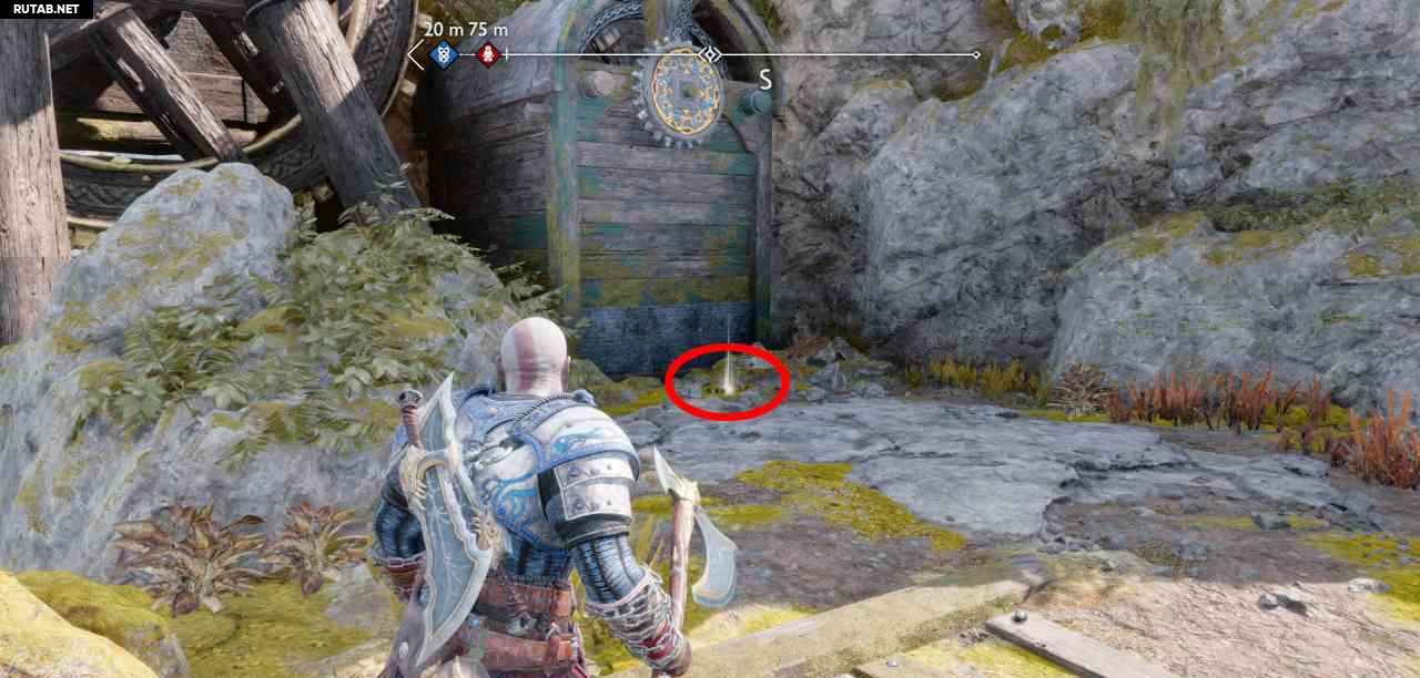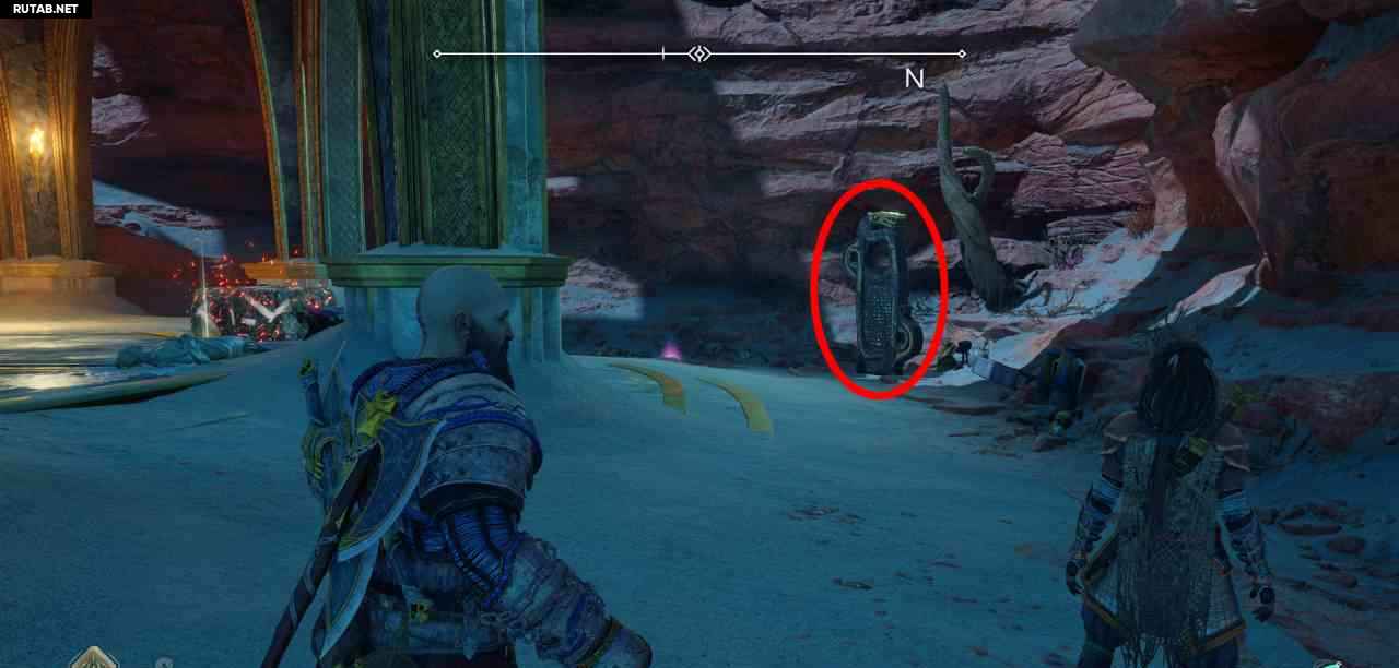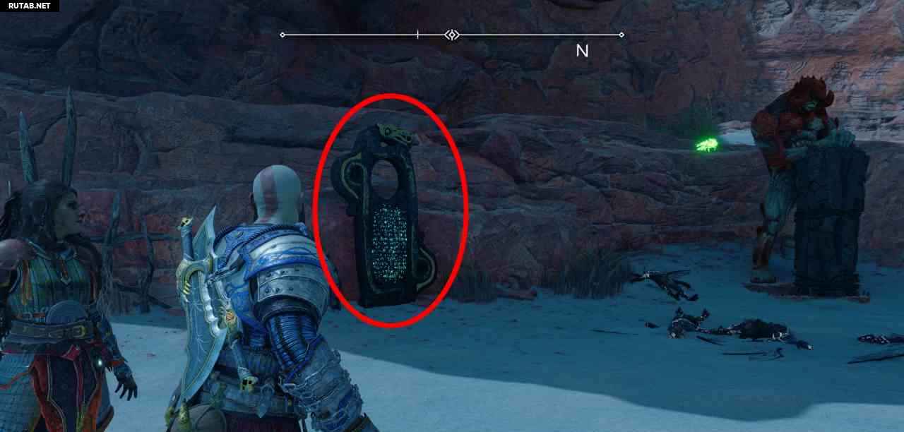 После получения вещей Фрейи используйте долото на алтаре справа. Затем спускайтесь обратно в основную зону. Теперь идите к воротам слева от того места, где вы впервые вошли в этот район. Вы должны зажечь две жаровни над воротами одновременно. Сначала очистите лианы под левой жаровней. Затем выстрелите 3 фиолетовыми руническими стрелами между двумя жаровнями и атакуйте их своими Клинками Хаоса, это зажжет обе жаровни одновременно. После этих ворот лор находится справа. Ищите синие буквы на стене. Сначала вы должны очистить врага, чтобы сделать это, сожгите лозы слева, чтобы подняться по тропе и победить маленьких монстров, которые усиливают другого врага.
