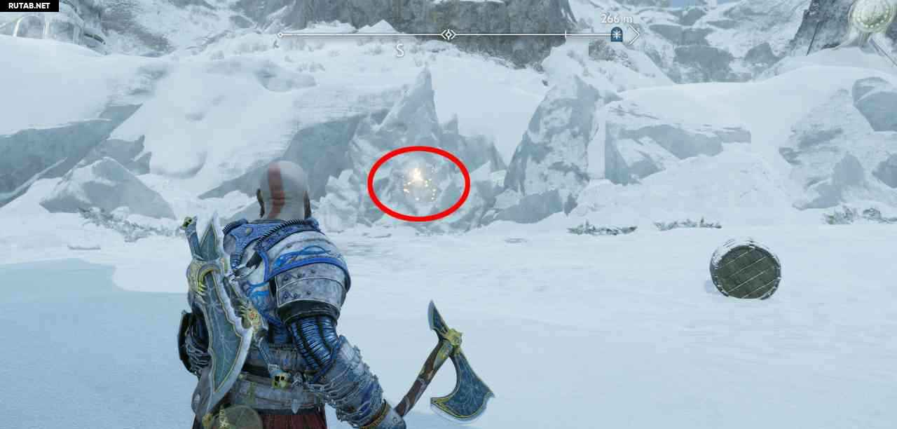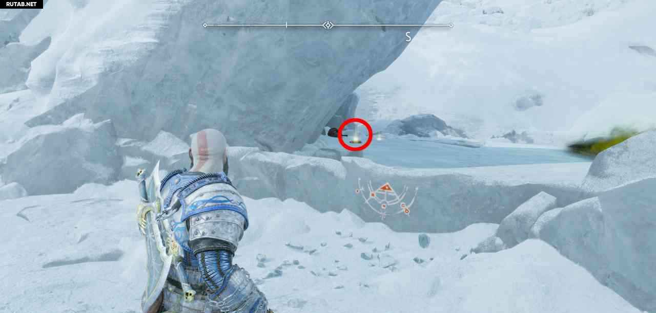 К юго-западу от Храма Тира, за желтым светящимся куском льда, который можно взорвать копьем.