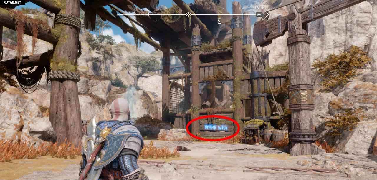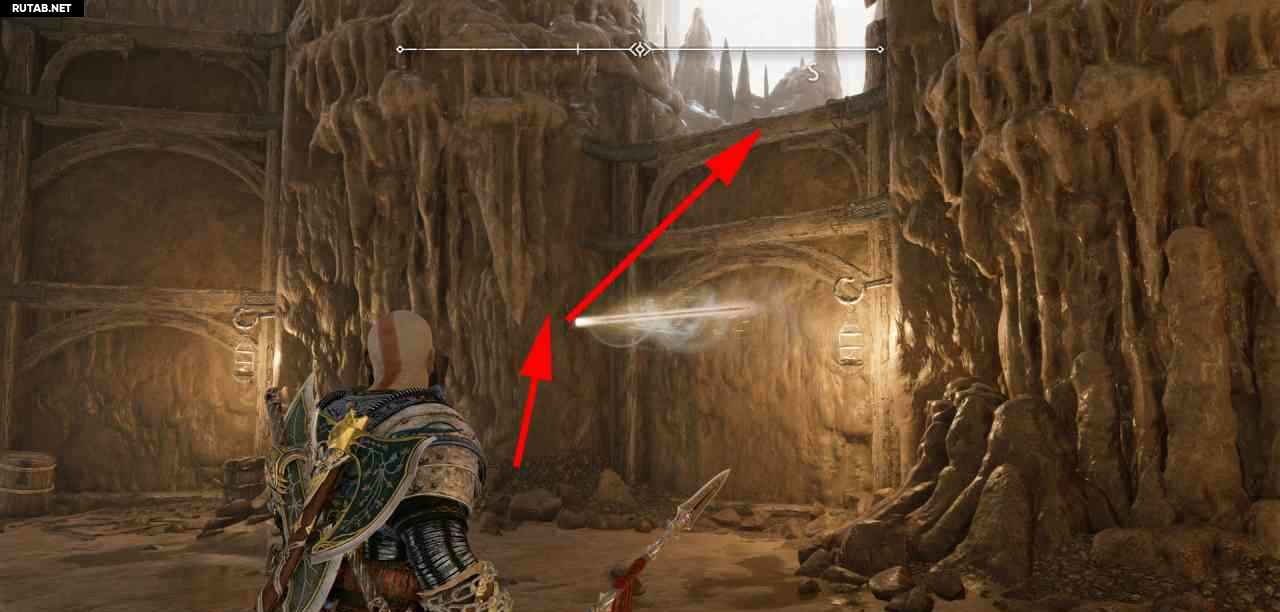 Следуйте указателю на Дело : «Возвращение реки». После использования подъемника он будет у стены, прежде чем взорвать стену копьем (некоторые враги также появляются в этой области).