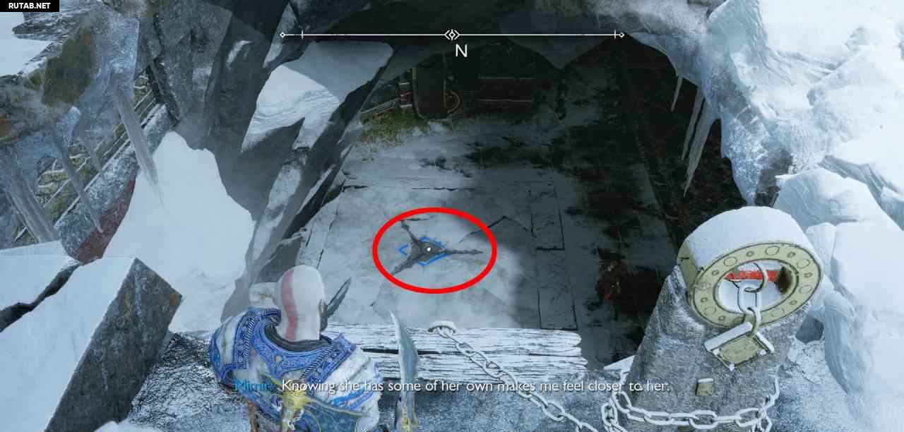 После того, как вы отправитесь на остров Люнгбакр, а затем вызовете Люнгбакра в Сторожевой башне, вы сможете полностью исследовать остров. Требуется, чтобы вы перерезали 3 цепи и метнули свой топор в замки на плавниках Люнгбакра. Во время прохождения квеста вы также можете собирать предметы коллекционирования по пути. Уничтожив первый замок, продолжайте идти по единственному пути вперед, поднявшись на золотую цепь, поверните направо, чтобы увидеть ее.
