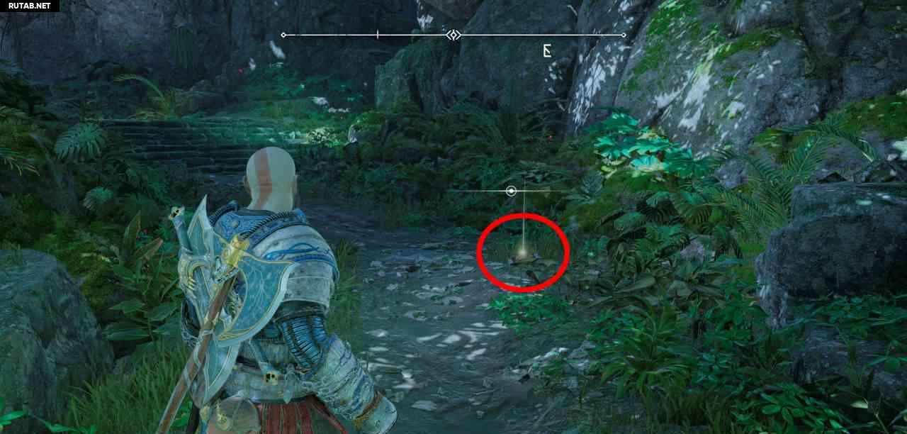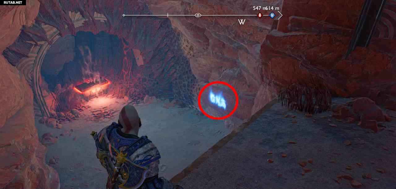 ^ Идите по правому пути, где есть развилка, посмотрите вниз справа, и вы уже увидите эту руну, светящуюся синим цветом. Вы можете спуститься по правой стороне, чтобы добраться до нее.
