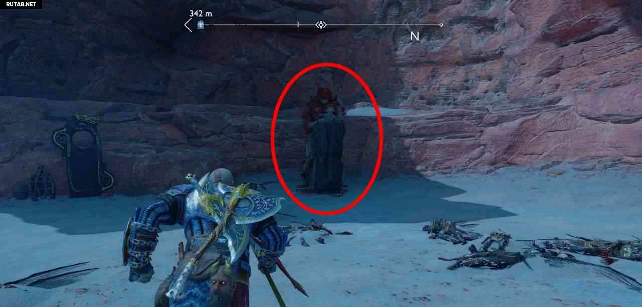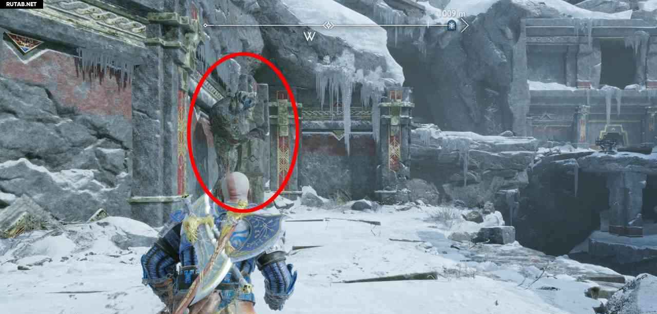 Получив Копье, отправляйтесь в Мидгард — Озеро Девяти. На юге от замерзшего озера находится светящаяся желтым ледяная глыба, которую вы можете взорвать копьем. За ней находится мистическая реликвия, в снегу. Убедитесь, что вы экипировали ее в разделе «Оружие» > «Реликвии» > «Мистическая реликвия». Вы можете активировать ее с помощью