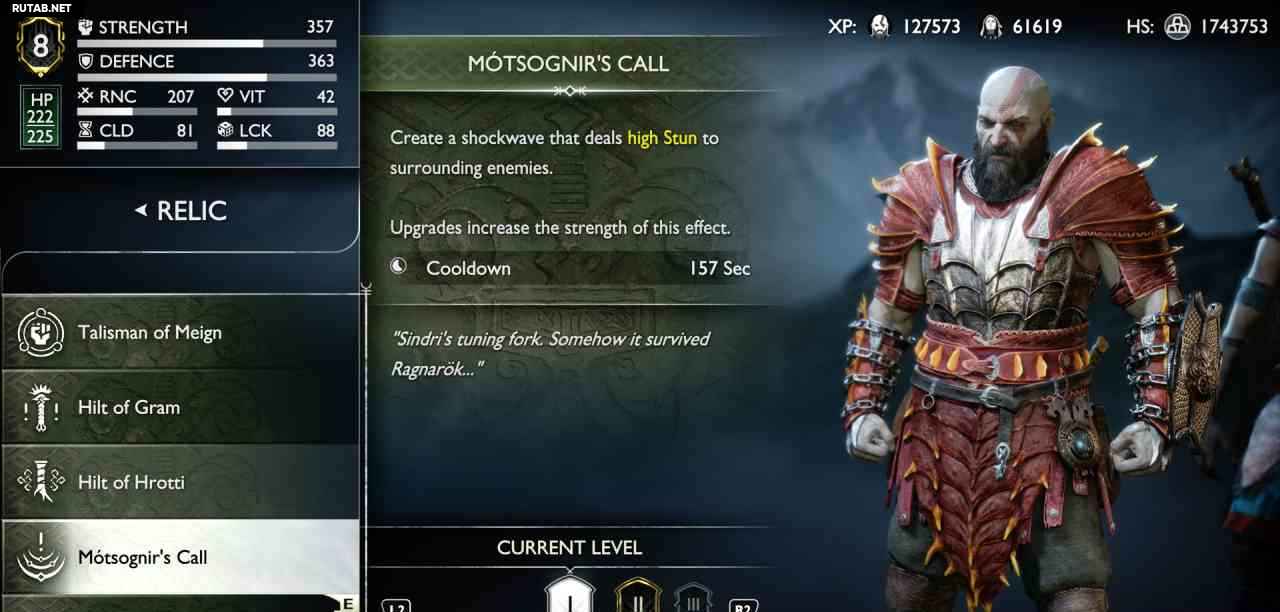 God of War Ragnarok содержит 14 локаций реликвий, также называемых рукоятью меча. Нахождение всех реликвий и рукоятей открывает трофей.