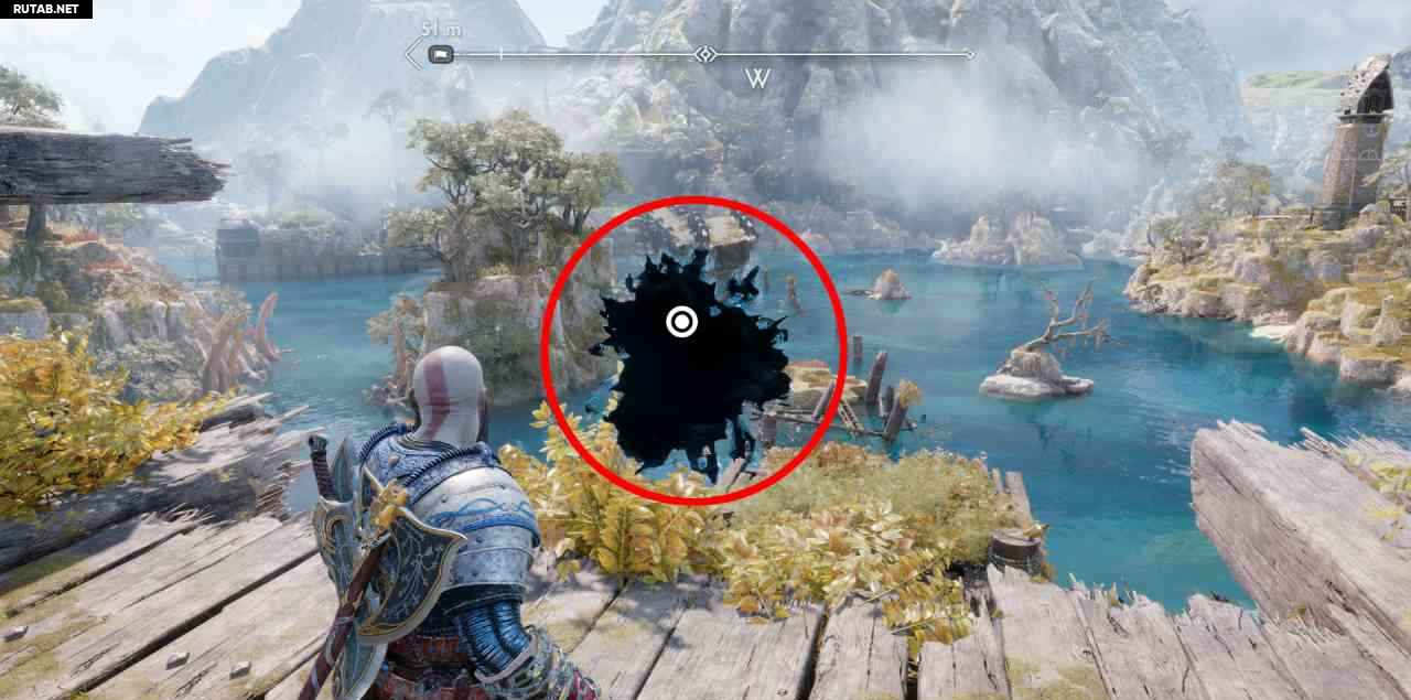 чтобы перевернуться на мост, повернуть направо, чтобы присесть под сломанным куском дерева, чтобы найти позади разлом Иггдрасиля. Взаимодействуйте с ним и побеждайте врагов, которые выходят из него.