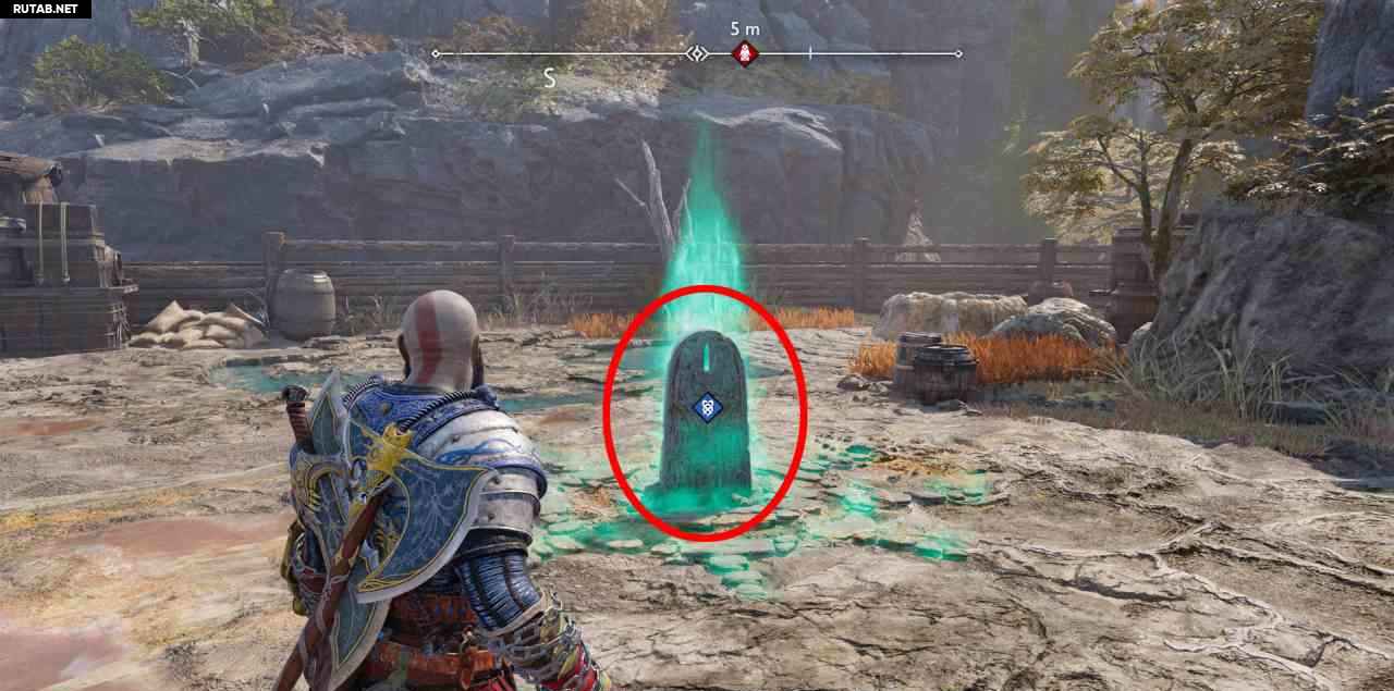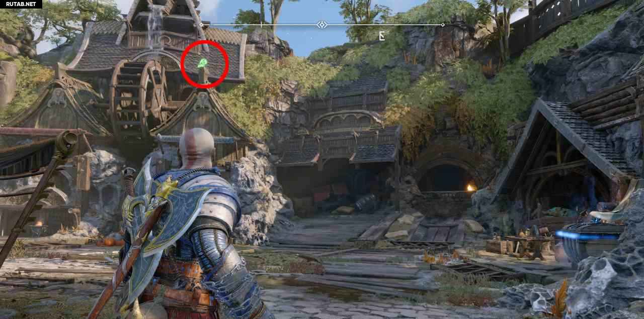 От последнего артефакта поднимитесь по выходу из туннеля. Сразу после выхода прямо перед вами из деревянного столба выходит газ/ветер. Для этого вам понадобится копье (открывается во время основной миссии 10: «Кузнец своей судьбы»). Бросьте копье по ветру в столб, это создаст путь для подъема. Поднявшись наверх, вы найдете легендарный сундук выше.
