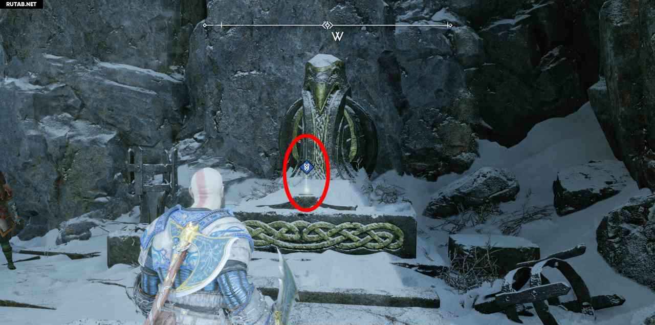 После легендарного сундука поднимитесь наверх, чтобы увидеть это впереди. Это не считается предметом коллекционирования, но необходимо для Просьбы: «Проклятие Сигрун».