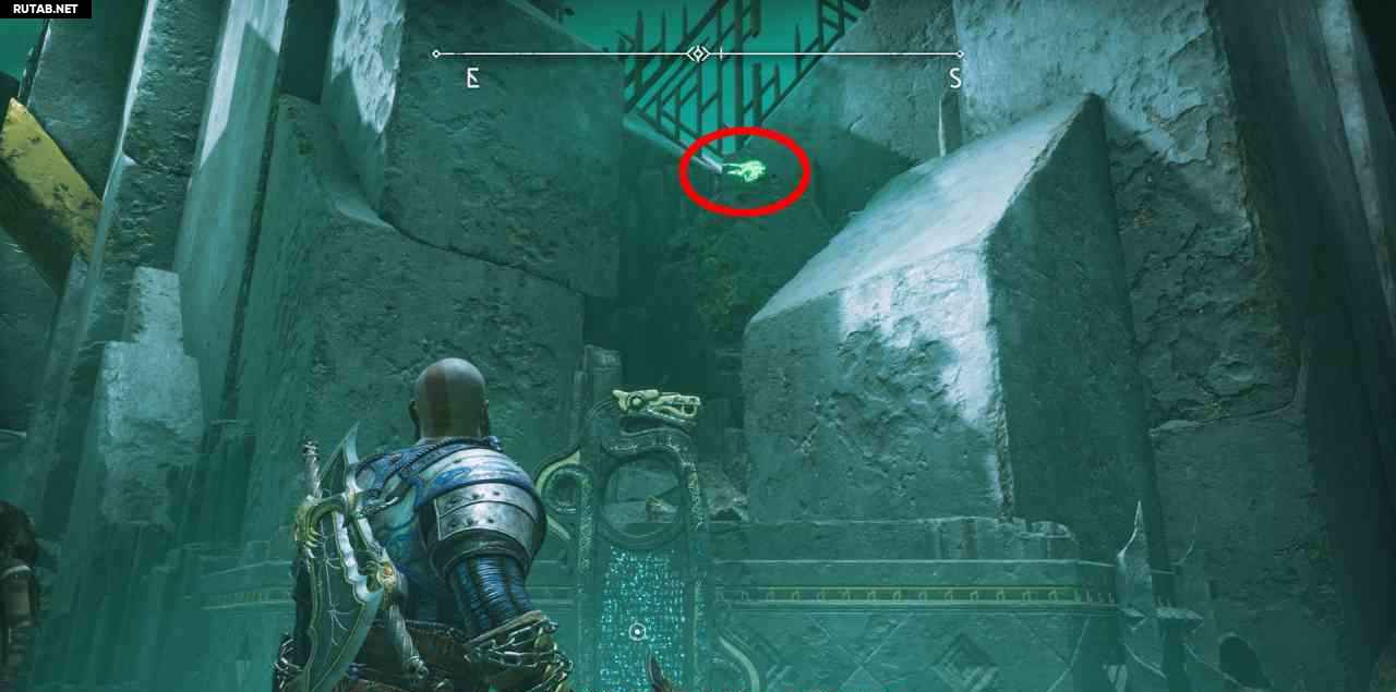 От ворона посмотрите вниз направо, и вы уже увидите эту руну, светящуюся голубым. Вы можете спуститься по правой стороне, чтобы добраться до нее.