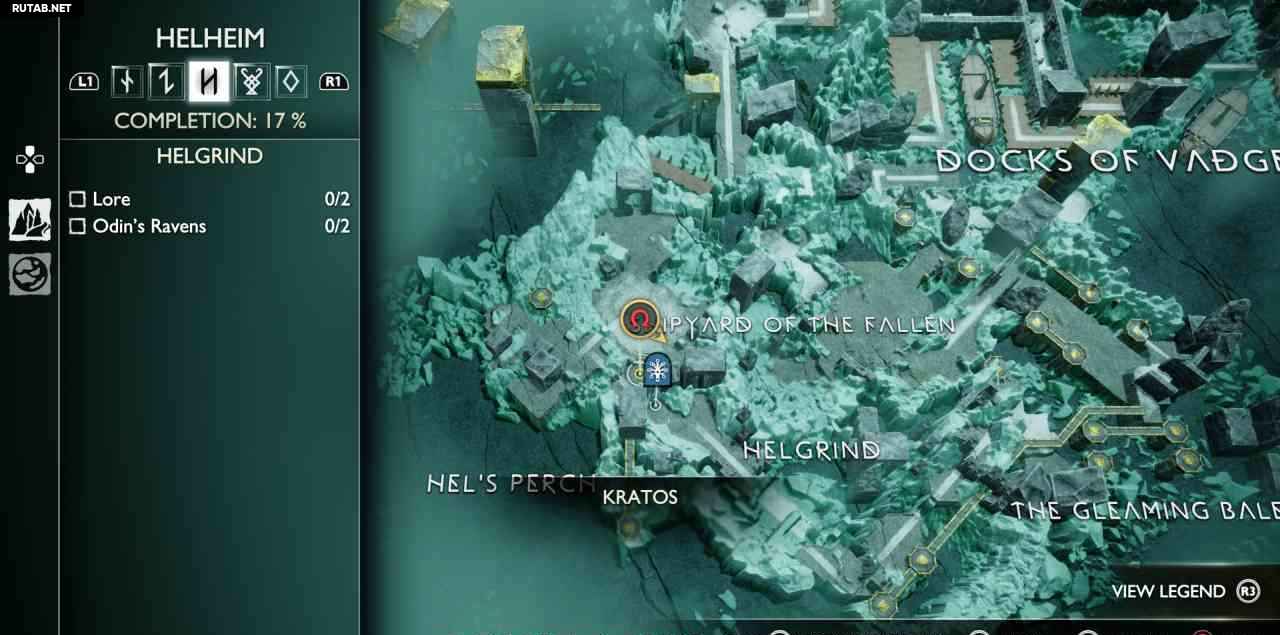 После сюжета вы можете отправиться обратно к вратам Гнездо Хеля. Перед воротами можно пройти налево или направо. Два предмета коллекционирования находятся на левом пути и два на правом пути. Сначала мы пойдем по левому пути. Поднявшись наверх, следуйте вдоль стены слева, там легенда.