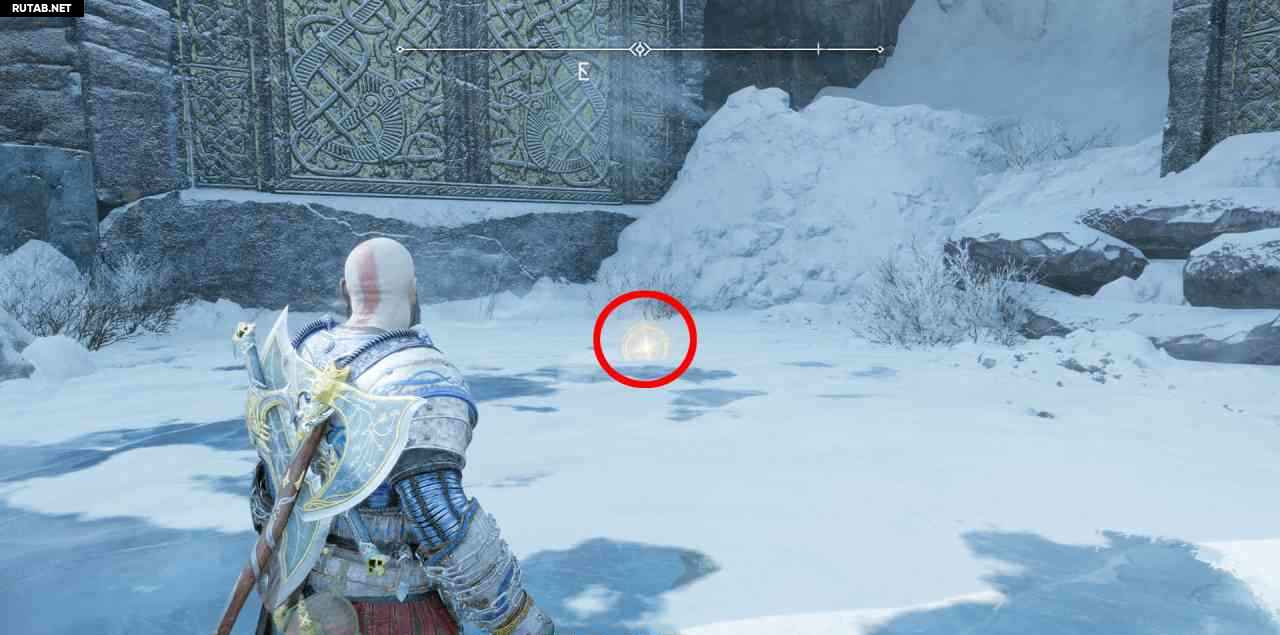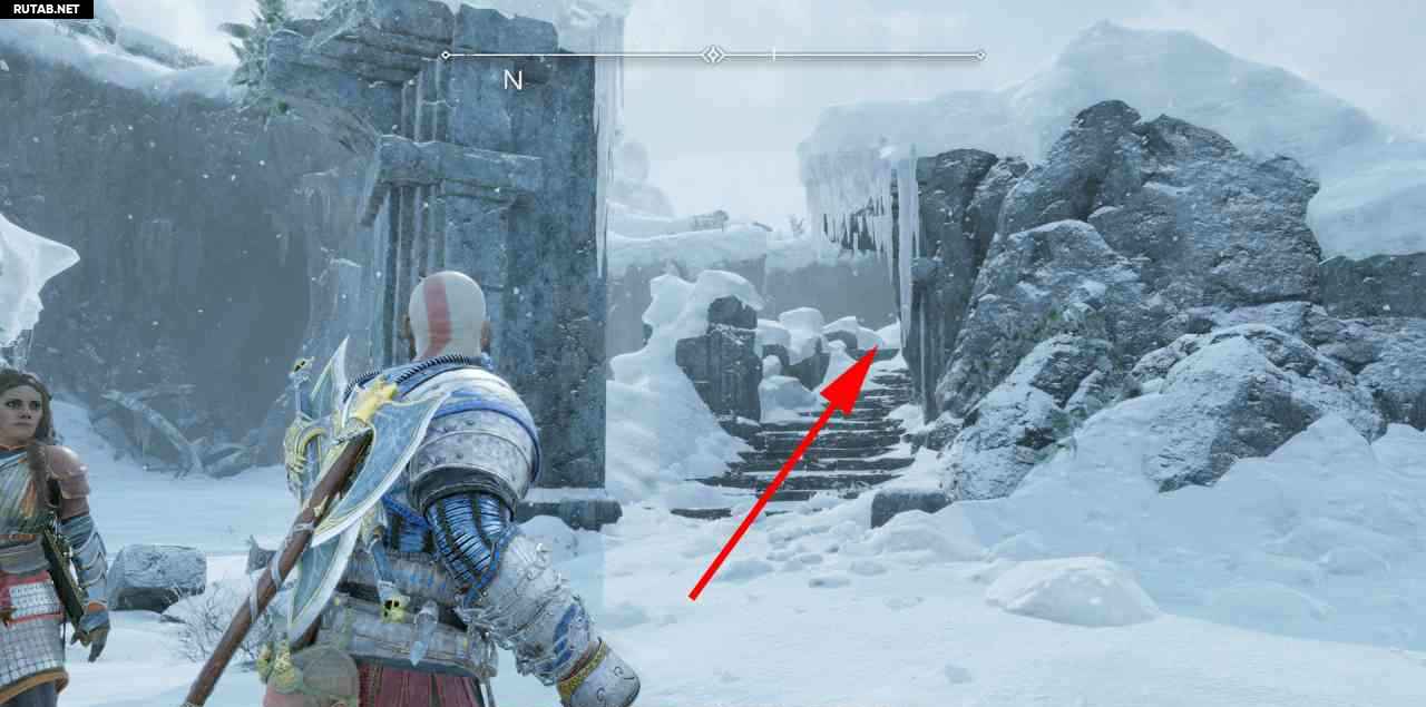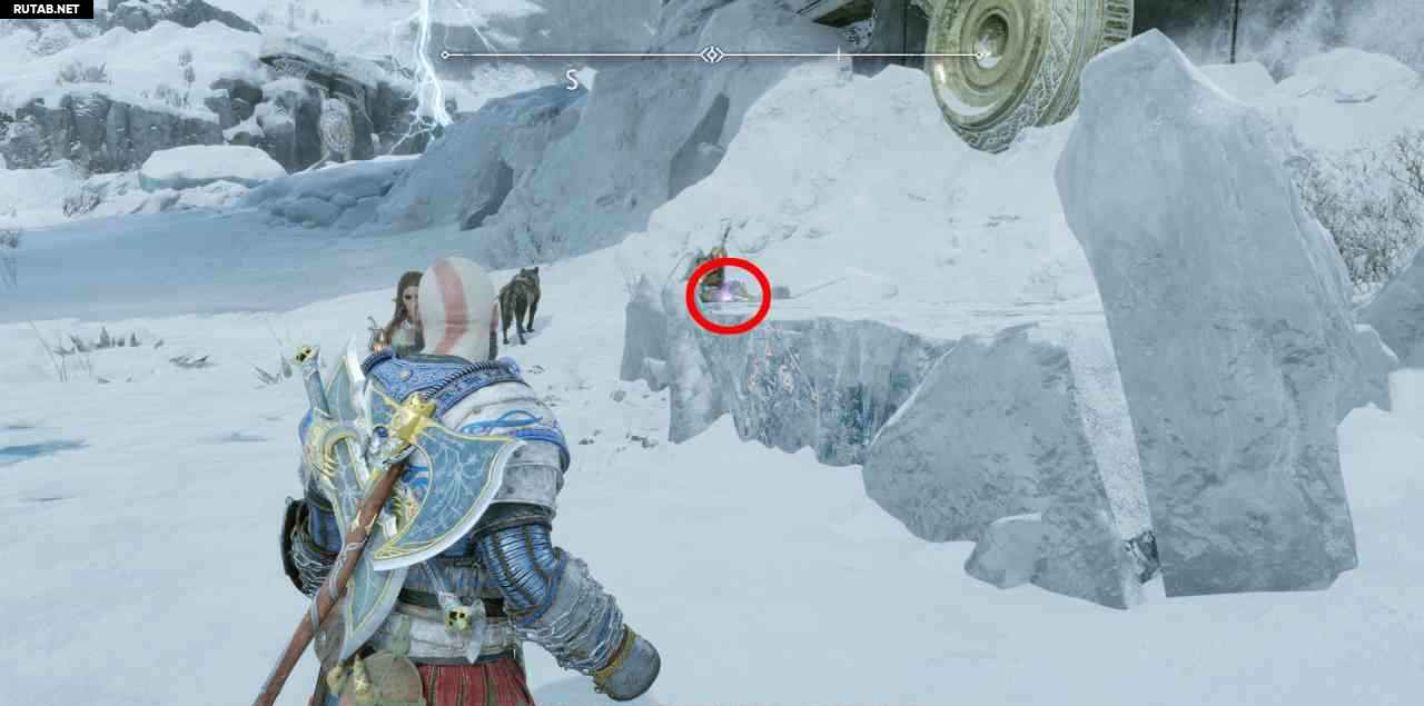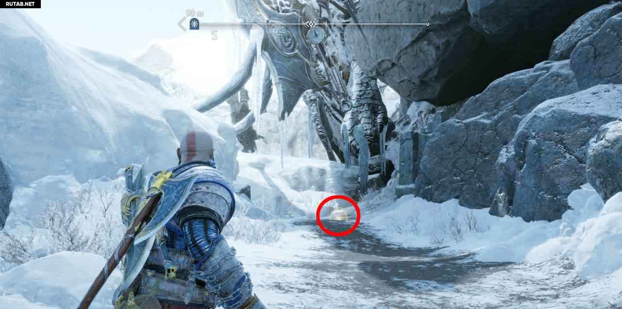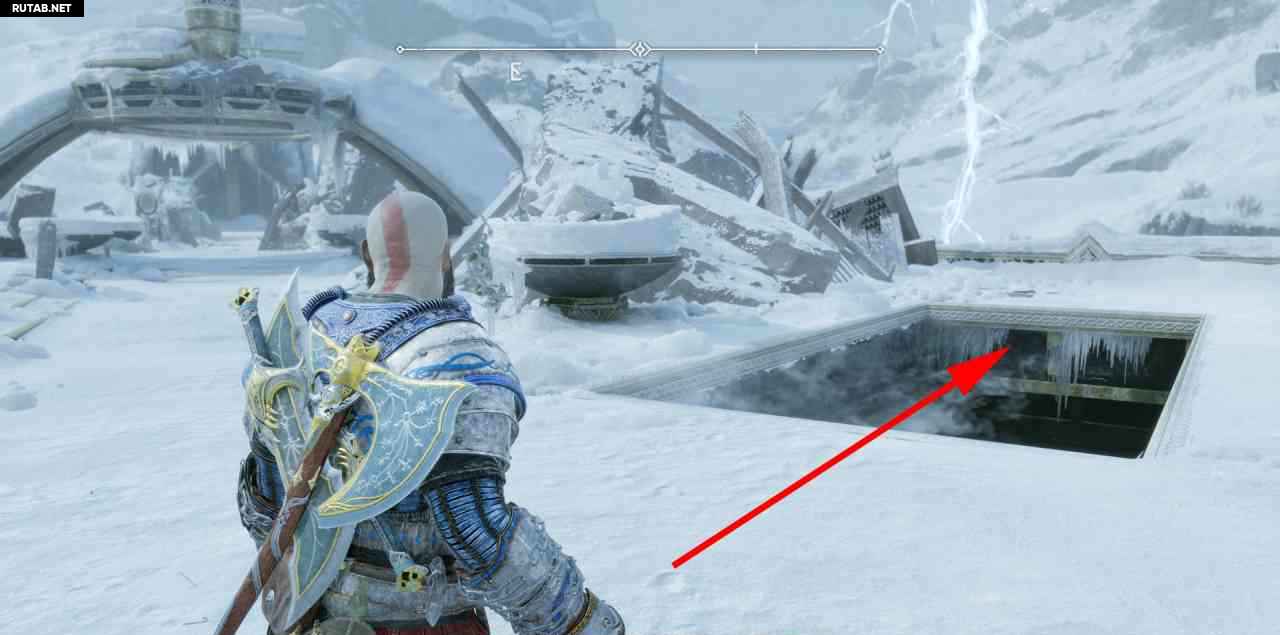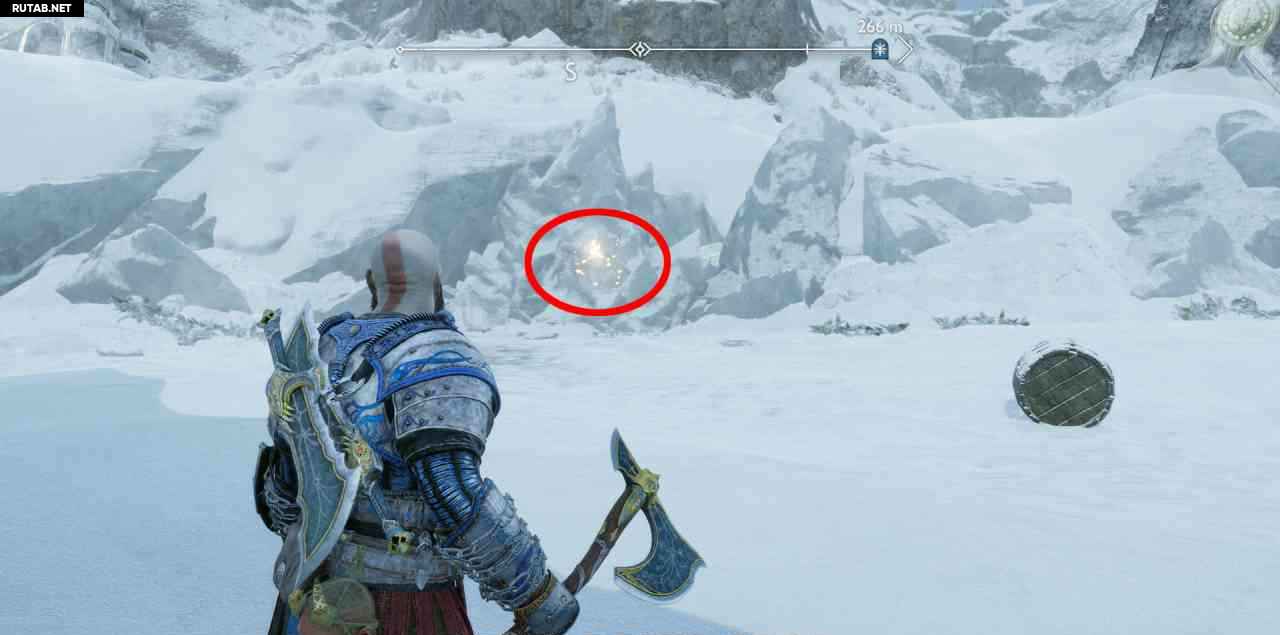К юго-западу от ворона, за желтым светящимся куском льда, который можно взорвать копьем.