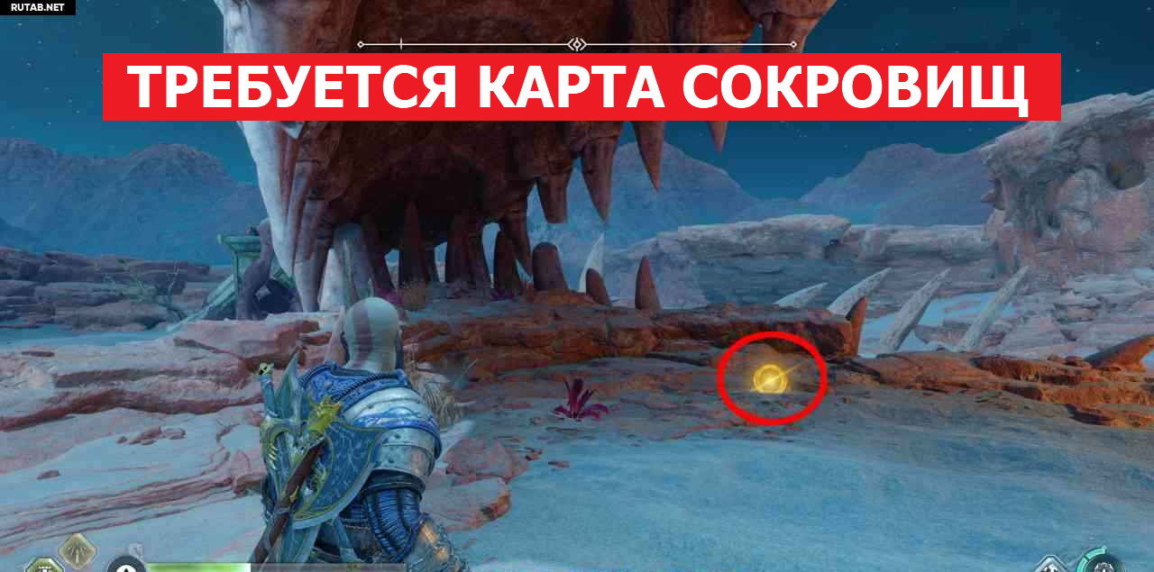 На севере, закопанное в большой голове дракона, в грязи. Чтобы сокровище появилось, вы должны сначала собрать карту сокровищ, она находится в свитке знаний, который можно найти в Альфхейме > Каньоны. См. Предметы коллекционирования Каньоны: #1 Легенда (Карта сокровищ — Золото стервятника). Вернитесь сюда после этого, и сокровище будет светиться золотым на земле.