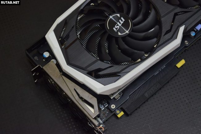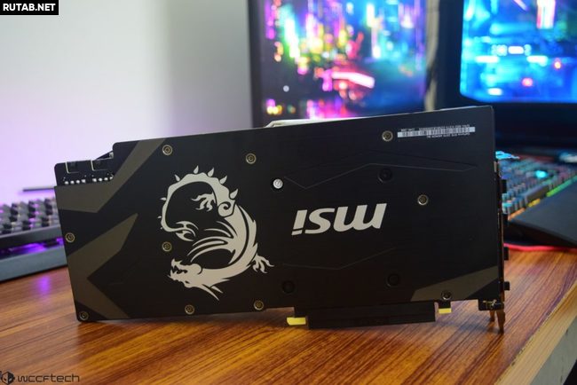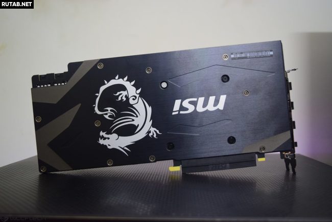 Задняя часть карты имеет прочную заднюю панель, которая выглядит потрясающе и предлагает превосходный внешний вид. Логотип MSI и Dragon отлично смотрятся вместе с серебристыми акцентными полосками на задней части. В целом, задняя панель для этой серии Armor впечатляет и является хорошим обновлением по сравнению с предыдущей конструкцией задней панели для серии 1070/1070 Ti Armor.