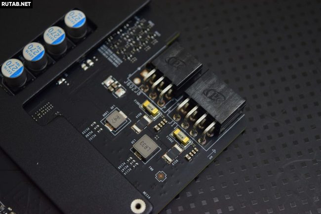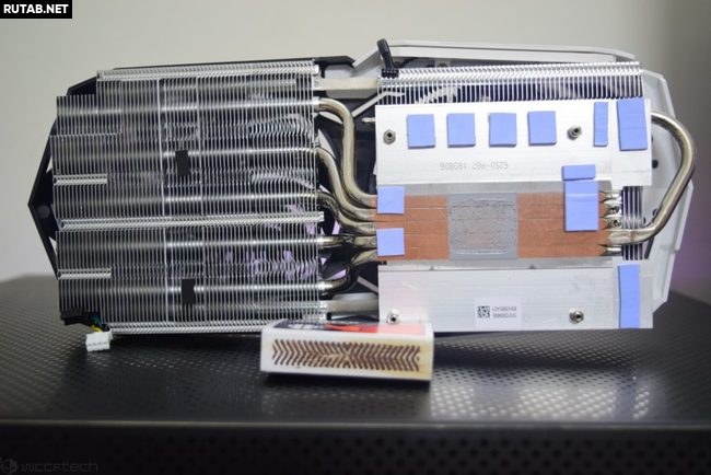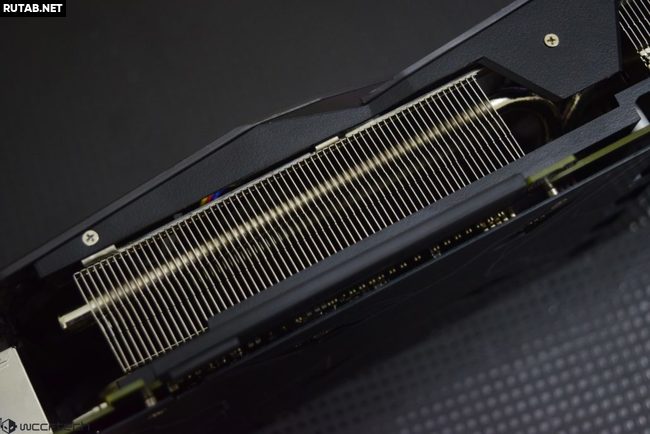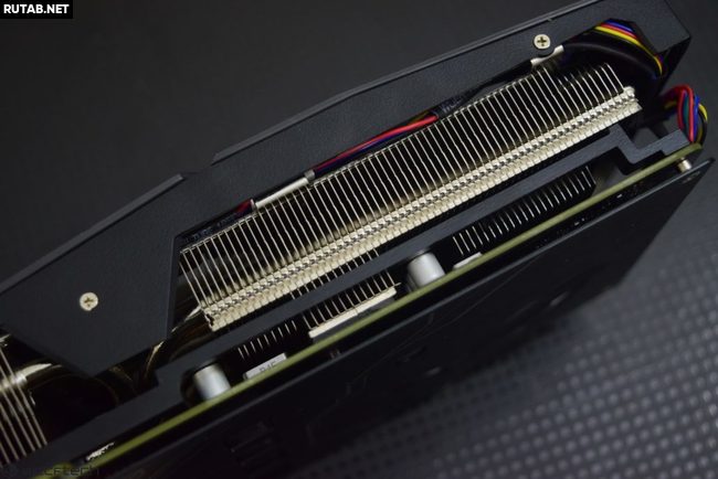 Печатная плата покрыта литьем под давлением, что обеспечивает повышенное рассеивание тепла для памяти и VRM. Круглые вентилируемые тепловые трубки обеспечивают равномерное распределение тепловой нагрузки между блоками радиатора.