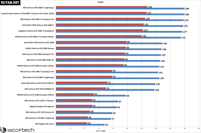 В 2016 году Id наконец выпустила DOOM. Все карты были способны выдавать достаточную частоту кадров при разрешении 1440p с настройками Nightmare, поэтому наш фокус переключился на разрешение 4K.