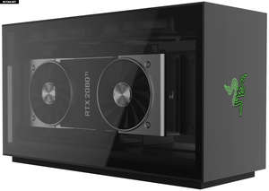 На данный момент пять компаний анонсировали корпуса NUC Element различных размеров, с более крупными корпусами, позволяющими устанавливать более длинные видеокарты. Собственный Intel NUC 9 Extreme – это самый миниатюрный вариант емкостью пять литров благодаря использованию крошечного блока питания Flex ATX. Он будет вмещать видеокарты длиной до 203 мм. Корпуса Cooler Master NC100 и Razer's Tomahawk N1 просторнее (с объемами 7,5 и 10 литров соответственно), что позволяет использовать немного большие блоки питания SFX и полноразмерные видеокарты. Также доступны: 5-литровый Adata XPG Gaia и 17,5-литровый Akasa Venom QX.
