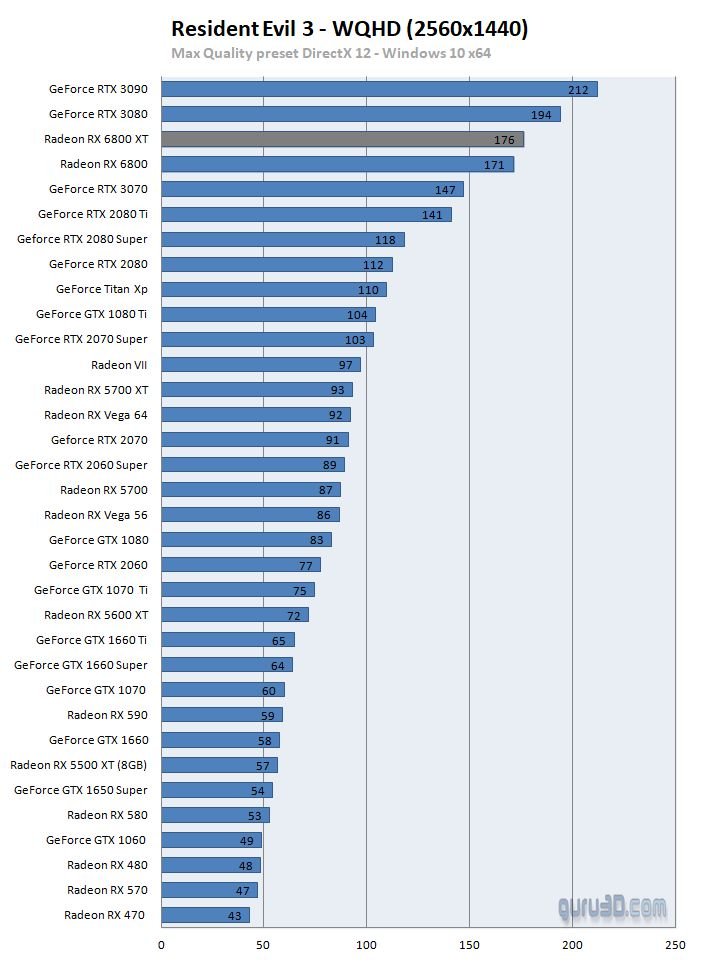 Эти цифры делают Radeon RX 6800 XT идеальным выбором для игр в 4K и 60 fps. Видеокарта достигла такого результата почти во всех тайтлах нашего тестового пакета. Все по-другому, когда вы включаете трассировку лучей. Как и в случае с продуктами Nvidia, производительность при работе с API DirectX Raytracing очень сильно снижается. До сих пор мы тестировали только две игры, но, похоже, снижение производительности больше, чем у Nvidia, которая улучшилась в этом поле с Ampere. Но помните, что это первое поколение трассировки лучей в картах AMD, поэтому производительность, тем не менее, очень впечатляет. Я ожидал производительность трассировки лучей, аналогичную той, которая известна по картам серии Pascal, где трассировка лучей работает в виде эмуляции в шейдерах. RX 6800 XT работает намного лучше, я бы даже сказал, что её производительность близка к уровню RTX 2080 Ti, с большими вариациями в зависимости от тестируемой игры.