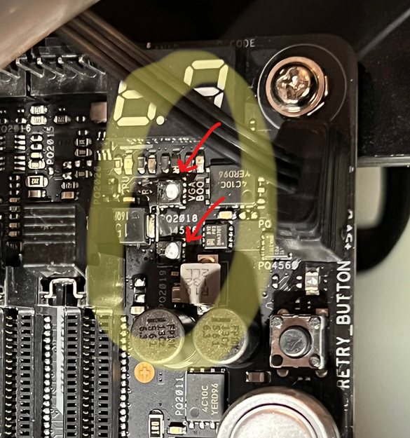 Так в чем же проблема? Пока рано утверждать, но, основываясь на информации, предоставленной пользователем, Maximumrog57, похоже, проблема возникла через несколько дней после запуска системы. Пользователь упоминает, что он услышал лязгающий звук, но на самой плате не было видимых признаков каких-либо повреждений. Однако уже на следующий день материнская плата не загрузилась и сообщила об ошибке 53 в QCODE 'DEBUG', в то время как QLED загорелся оранжевым цветом. Пользователь также увидел видимые ожоги на чипах прямо под QLED.