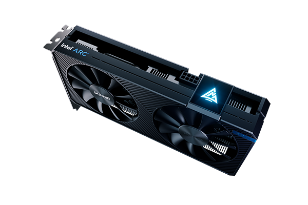 Видеокарта имеет тонкий задний кожух и небольшой логотип Intel Arc. Логотип Gunnir подсвечивается и, если не считать контрастного алюминиевого радиатора, не выглядит дешевым. Карта имеет стандартный набор видеовыходов, почти наверняка состоящий из трех портов DP 1.4 и HDMI 2.1. Эти четыре видеовыхода могут завоевать популярность среди пользователей, которым нужна поддержка трех мониторов, функция, которой явно не хватает в моделях AMD RX 6400 и RX 6500.