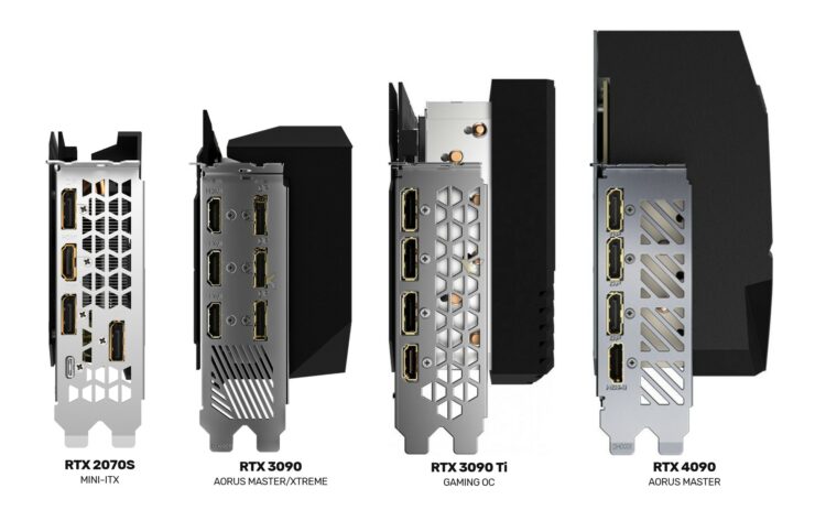 Среди большинства производителей видеокарт Gigabyte относится к избранной группе компаний, которые не оснащают свои графические процессоры трех- или четырехслотовыми разъемами ввода-вывода. В будущем компания может изменить планы охлаждения на комплект охлаждения AIO или перейти на водяные блоки для охлаждения своих графических карт.
