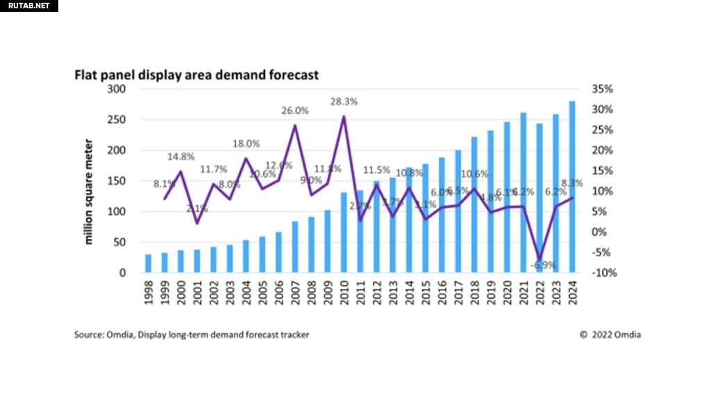 Фактически, 2022 год войдет в историю как первый год, когда спрос на плоские экраны стал отрицательным. Тем не менее, по словам Рики Парка, старшего главного аналитика исследовательской практики Omdia Display, если появятся признаки того, что инфляция снизится, а мировая экономика подаст положительные сигналы, эта тенденция изменится в 2023 и 2024 годах.