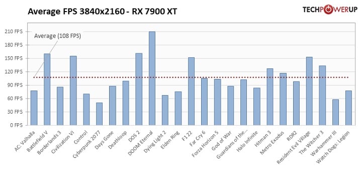 Результаты производительности AMD Radeon RX 7900 XT 4K Ultra HD. Источник: TechPowerUp.