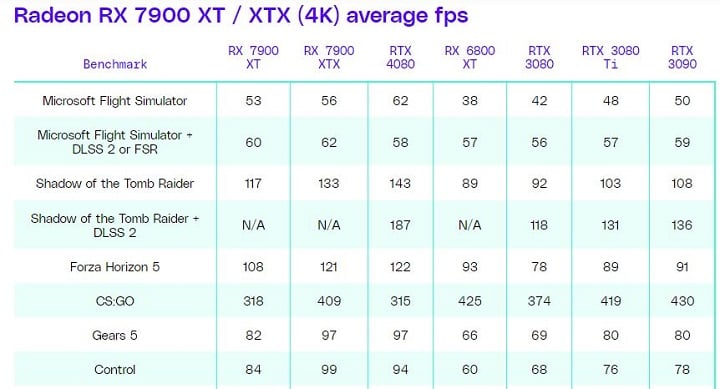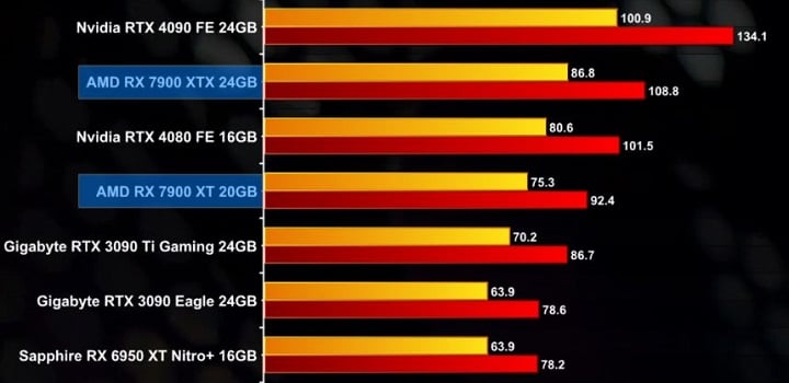 Результаты производительности AMD Radeon RX 7900 XTX 4K Ultra HD. Источник: The Verge.