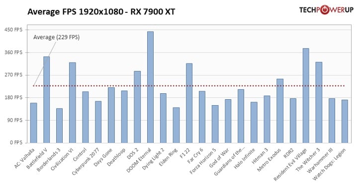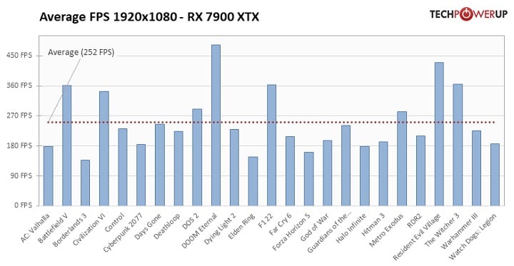 Результаты производительности AMD Radeon RX 7900 XTX в Full HD. Источник: TechPowerUp.