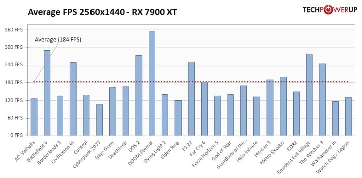 Результаты производительности AMD Radeon RX 7900 XT WQHD. Источник: TechPowerUp.
