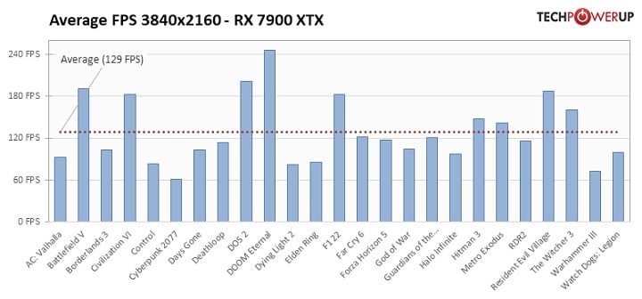 Результаты производительности AMD Radeon RX 7900 XTX 4K Ultra HD. Источник: TechPowerUp.